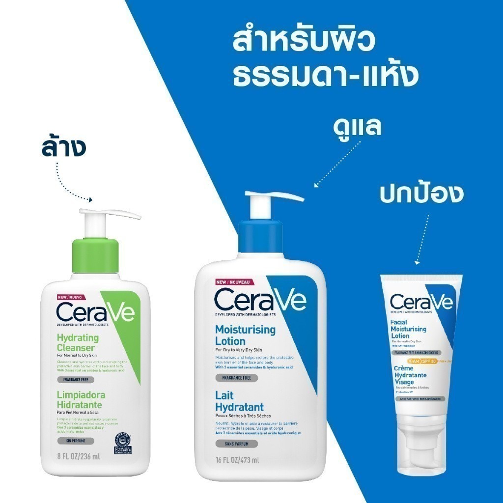 • แบรนด์ของเรา / ABOUT OUR BRANDเรื่องราวของ CeraVe เริ่มต้นขึ้นในปี 2548 หลังจากผู้เชี่ยวชาญสังเกตว่าสภาพผิวหลายอย่างเช่น สิว กลาก โรคสะเกิดเงินและหิวแห้ง ล้วนมีสิ่งหนึ่งที่เหมือนกัน นั่นคือเกราะปกป้องผิวหนังถูกทำลาย CeraVe จึงได้รับการพัฒนาร่วมกับแพทย์ผิวหนังผู้เชี่ยวชาญและออกผลิตภัณฑ์ดูแลผิวที่มีเซราไมด์ที่จำเป็นต่อผิว 3 ชนิด เพื่อช่วยฟื้นฟู และช่วยเสริมเกราะปกป้องผิวให้กลับมาแข็งแรง สุขภาพดีThe CeraVe story began in 2005 After experts noticed that many skin conditions such as acne, eczema, psoriasis and dry skin all had one thing in common: a compromised skin barrier. Developed with dermatologists, CeraVe offers a complete line of skincare products that contain three essential ceramides enhanced with a revolutionary delivery system to help restore the skin’s natural protective barrier.