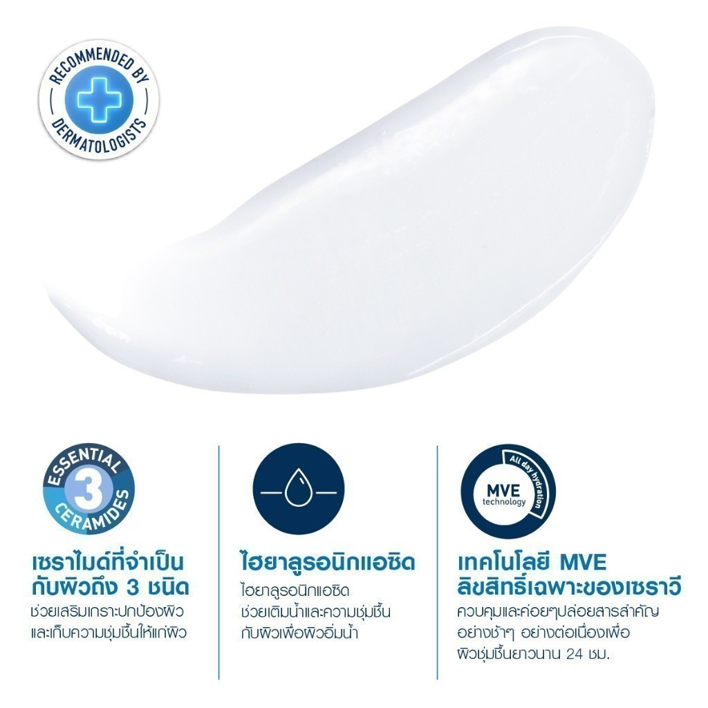 • รายละเอียดผลิตภัณฑ์ / PRODUCT DESCRIPTIONเซราวี มอยเจอร์ไรซิ่ง โลชั่น โลชั่นบำรุงผิวให้ความชุ่มชื้นตลอดวันและช่วยเสริมปราการปกป้องผิวหน้าและกาย สำหรับผิวธรรมดา-ผิวแห้ง ผสานเซราไมด์ที่จำเป็นต่อผิว 3 ชนิด และ MVE Technology ลิขสิทธิ์เฉพาะของเซราวี นวัตกรรมกักเก็บความชุ่มชื้นให้ผิวได้อย่างยาวนาน เนื้อสัมผัสบางเบาซึมเร็ว ไม่ทำให้เหนียวเหนอะหนะ ด้วยสูตรไม่ก่อให้เกิดการอุดตัน (non-comedogenic) ปราศจากน้ำหอมเซราวีพัฒนาผลิตภัณฑ์ร่วมกับแพทย์ผู้เชี่ยวชาญด้านผิวหนัง ผ่านการรับรองโดย National Eczema Association