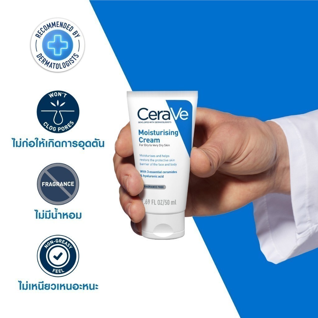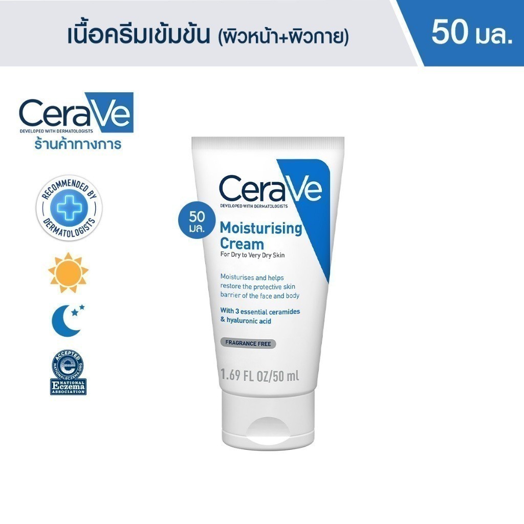 • รายละเอียดผลิตภัณฑ์ / PRODUCT DESCRIPTIONเซราวี CERAVE Moisturising Cream ครีมบำรุงผิวหน้าและผิวกาย ให้ความชุ่มชื้น สำหรับผิวแห้ง-แห้งมาก เนื้อเข้มข้น 50g.(มอยเจอร์ไรเซอร์ Moisturising Cream ผิวชุ่มชื้น)