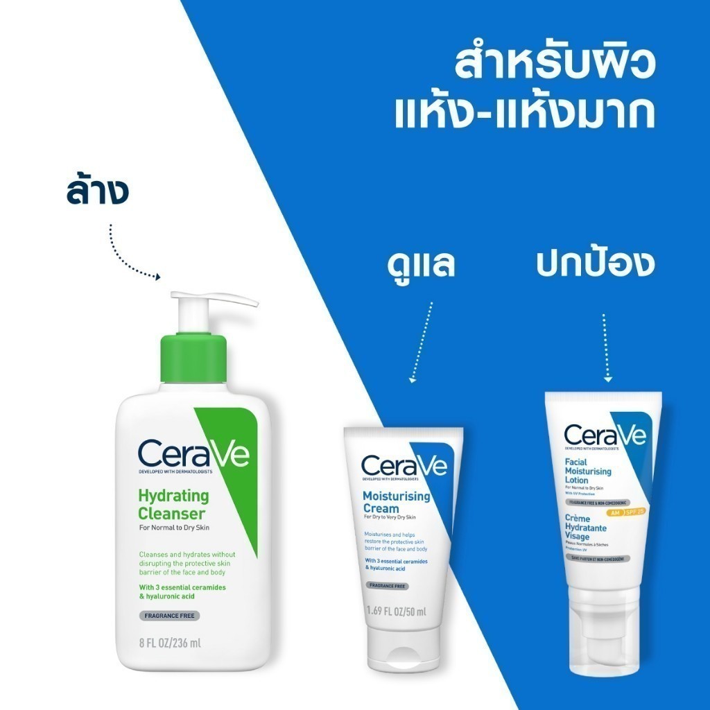 • แบรนด์ของเรา / ABOUT OUR BRANDเรื่องราวของ CeraVe เริ่มต้นขึ้นในปี 2548 หลังจากผู้เชี่ยวชาญสังเกตว่าสภาพผิวหลายอย่างเช่น สิว กลาก โรคสะเกิดเงินและหิวแห้ง ล้วนมีสิ่งหนึ่งที่เหมือนกัน นั่นคือเกราะปกป้องผิวหนังถูกทำลาย CeraVe จึงได้รับการพัฒนาร่วมกับแพทย์ผิวหนังผู้เชี่ยวชาญและออกผลิตภัณฑ์ดูแลผิวที่มีเซราไมด์ที่จำเป็นต่อผิว 3 ชนิด เพื่อช่วยฟื้นฟู และช่วยเสริมเกราะปกป้องผิวให้กลับมาแข็งแรง สุขภาพดีThe CeraVe story began in 2005 After experts noticed that many skin conditions such as acne, eczema, psoriasis and dry skin all had one thing in common: a compromised skin barrier. Developed with dermatologists, CeraVe offers a complete line of skincare products that contain three essential ceramides enhanced with a revolutionary delivery system to help restore the skin’s natural protective barrier.