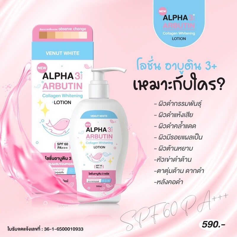 โลชั่นอัลฟ่าอาร์บูติน คอลลาเจน Alpha Arbutin Callagen Lotion SPF60 By Veenut White ขนาด 500ml.Sản phẩm cùng danh mục