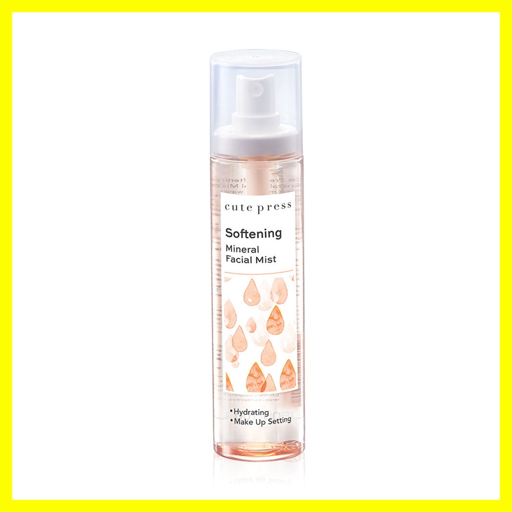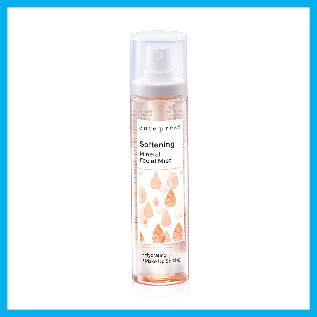 Cr.cutepress.comCute Press Softening Mineral Facial Mist 100ml สเปรย์น้ำแร่บำรุงผิวหน้า เพื่อการแต่งหน้าที่ดูเป็นธรรมชาติ ช่วยให้เมคอัพติดทนนาน ละอองสเปรย์กระจายอณูละเอียด ซึบซาบเข้าสู่ผิวได้อย่างรวดเร็ว พร้อมคุณค่าสารบำรุงผิวด้วยคอลลาเจนเข้มข้มจากปลาทะเลน้ำลึก และสารสกัดจากเมล่อน ช่วยเติมความชุ่มชื้นให้กับผิว เพื่อผิวเนียนนุ่มแลดูอ่อนเยาว์