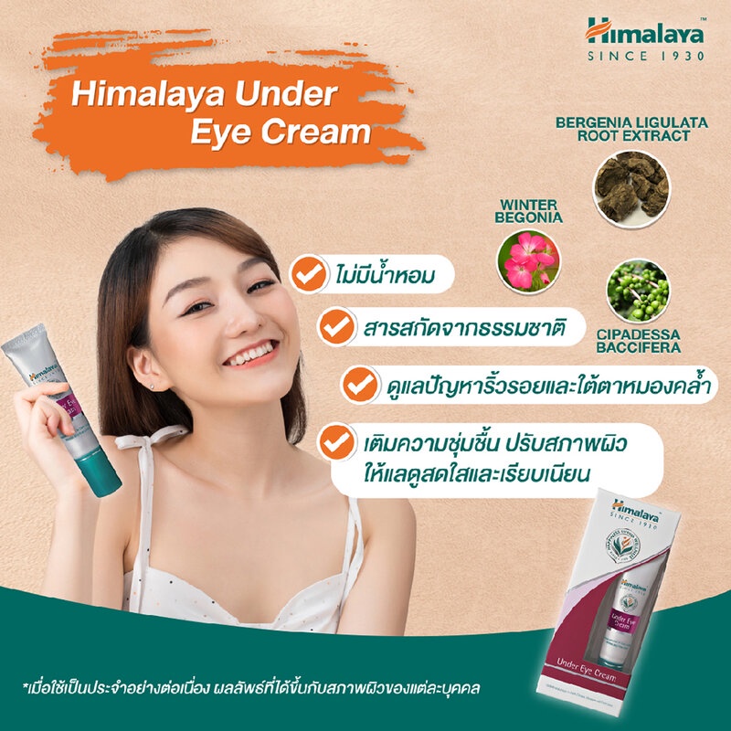 Cr: Facebook.com/himalayathailandHimalaya Herbals Under Eye Cream [15ml x 2pcs]บอกลาใต้ตาหมองคล้ำและดูอิดโรย ด้วยผลิตภัณฑ์ขายดีที่ได้รับรางวัลในหลายประเทศ ครีมบำรุงผิวรอบดวงตาสูตรเข้มข้น เนื้อบางเบาเกลี่ยง่าย ช่วยบำรุงผิวบอบบางที่แห้งกร้านและหมองคล้ำด้วยสารสกัดธรรมชาตินานาชนิด เติมความชุ่มชื่น ลดเลือนริ้วรอยตื้นๆ ลดรอยหมองคล้ำ ลดการบวมช้ำจากภูมิแพ้ ชุบชีวิตให้ผิวบอบบางรอบดวงตาเปล่งประกายสดใสอีกครั้ง