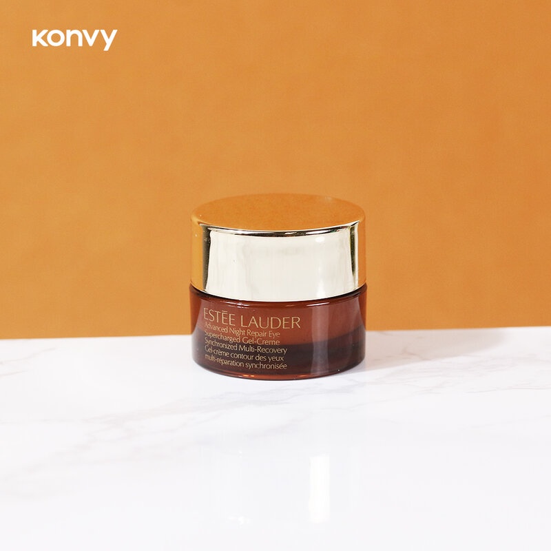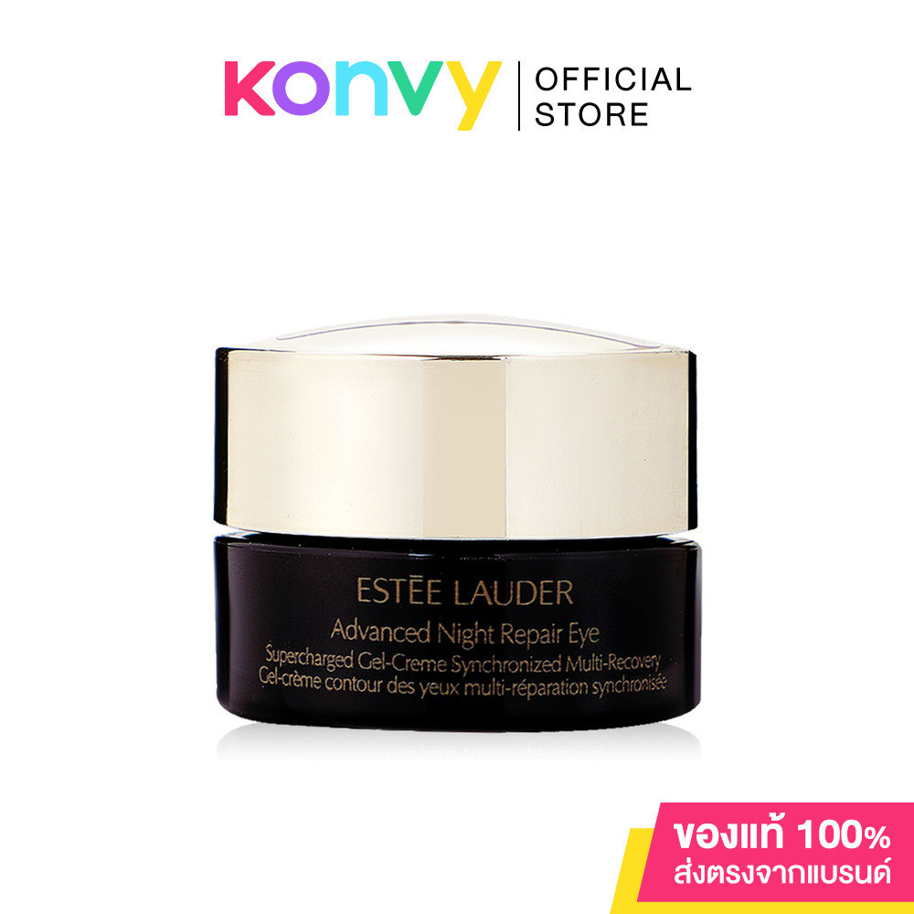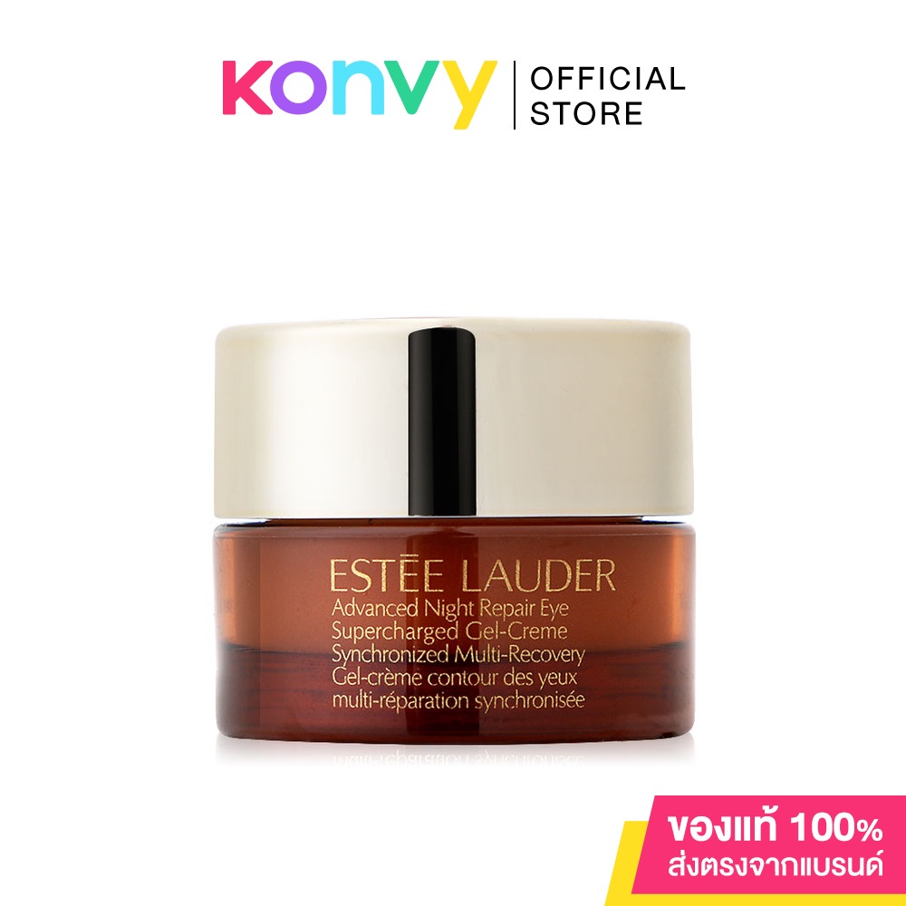 Estee Lauder Advanced Night Repair Eye Supercharged Gel-Creme 5mlอายครีมเนื้อเจล ที่มาพร้อม double action ช่วยทำหน้าที่ต่อสู้กับอนุมูลเสรีสองเท่า ด้วยเทคโนโลยี FR-Defense™ ซึ่งเป็นครั้งแรกที่ช่วยให้ผิวสามารถต่อต้านการผลิตอนุมูลเสรีที่เกิดจากการตอบสนองต่อปัจจัยทำร้ายผิวในสภาพแวดล้อมสูตรเจลครีมที่ก้าวล้ำนี้ยังช่วยทำให้อนุมูลเสรีที่มีอยู่แล้ว และช่วยเติมพลังให้กับผิวบริเวณรอบดวงตาทั้งหมด สูตรใหม่ซึ่งมีเทคโนโลยี Chronolux™ Power Signal นี้ยังช่วยสนับสนุนกระบวนการซ่อมแซมตนเองของผิวเพื่อช่วยลดเลือนสัญญาณแห่งวัยเริ่มต้น รวมทั้ง รอยคล้ำ เส้นริ้วเล็กๆ ผิวแห้ง และถุงใต้ตา• ลดเลือนรอยคล้ำรอบดวงตาในทุกบริเวณ ทั้งใต้ตา เปลือกตา รวมถึงหัวมุมหัวตาและหางตา