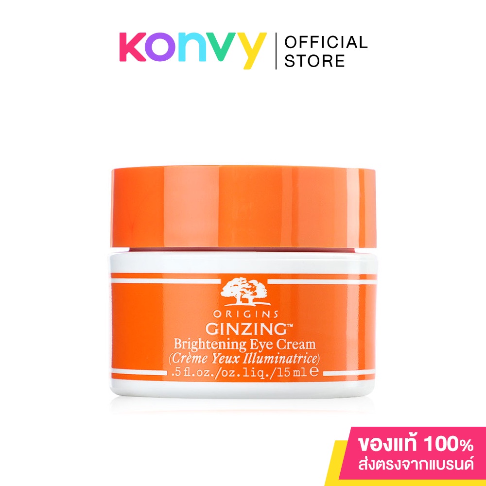 Origins GinZing Refreshing Eye Cream To Brighten And Depuff 15ml #Original ครีมบำรุงผิวรอบดวงตา สูตรใหม่ได้รับการพัฒนาให้ดียิ่งขึ้นเพื่อช่วยลดเลือนรอยคล้ำรอบดวงตาให้ดูจางลงในหลายมิติ ทั้งยังเปี่ยมด้วยคุณประโยชน์ที่ช่วยให้ผิวรอบดวงตาแลดูสว่างขึ้นและช่วยลดเลือนรอยคล้ำรอบดวงตา ช่วยรับมือกับผิวรอบดวงตาที่แลดูหม่นหมอง ในขณะที่ช่วยลดเลือนผิวใต้ตาที่ไม่กระชับและโอบอุ้มผิวรอบดวงตาให้ชุ่มชื้นด้วยส่วนผสมที่ช่วยเสริมความชุ่มชื้นให้แก่ผิว 13 ชนิด ด้วยส่วนผสมจากธรรมชาติที่มอบการบำรุงให้แก่ผิว ซึ่งเปี่ยมด้วยประสิทธิภาพจากโสมและคาเฟอีนจากเมล็ดกาแฟที่ทำงานผสานกันกับวิตามินซี และ Niacinamide (วิตามินบี 3) ที่เป็นส่วนผสมใหม่ของ GinZing ช่วยเผยผิวรอบดวงตาที่แลดูสุขภาพดีและเปล่งประกายกว่าที่เคย• เปี่ยมด้วยประสิทธิภาพจากโสมและคาเฟอีนจากเมล็ดกาแฟที่ทำงานผสานกันกับวิตามินซี และ Niacinamide (วิตามินบี 3)