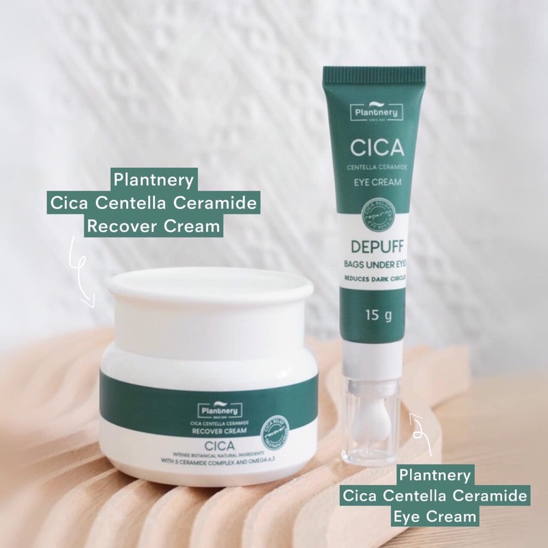 Cr.facebook.com/PlantneryPlantnery Cica Centella Ceramide Eye Cream 15g ครีมทารอบดวงตา สูตรอ่อนโยนต่อผิวรอบดวงตา ด้วยพฤษเคมีธรรมชาติ CICA Centella, 5 Ceramide Complex, Encapsulated Caffeine แก้ปัญหารอยคล้ำรอบดวงตาจากการนอนดึก ลดถุงใต้ตาบวมหย่อยคล้อย เสริมชั้นผิวแข็งแรง ริ้วรอยดูลดเลือน เนื้อครีม โครงสร้างอีมัลชั่นแบบ Liquid Crystal มีการเรียงแบบ “Lamellar Structure” ลักษณะโครงสร้างคล้ายกับชั้นไขมันระหว่างเซลล์ผิว (Intercellular Lipid) ในผิวของเรา ซึ่งทำหน้าที่เป็นปราการปกป้องผิวจากการถูกทำร้ายจากมลภาวะ ความเครียด เมื่อวนครีมลงบนผิวด้วยแอปพลิเคเตอร์ เนื้อครีมสามารถนำพาสารสำคัญในสูตร เช่น Ceramide, Cholesterol และ Fatty Acid เข้าไปทดแทนชั้นไขมันระหว่างเซลล์ผิวที่ถูกทำลายไปด้วยปัจจัยลบต่างๆ ไม่ว่าจะมาจากการใช้ผลิตภัณฑ์ที่รุนแรงกับผิวมากเกินไป การทำให้ผิวเกิดการระคายเคือง หรือแม้แต่การที่ผิวมีการผลิตน้ำมันตามธรรมชาติน้อยผิดปกติ