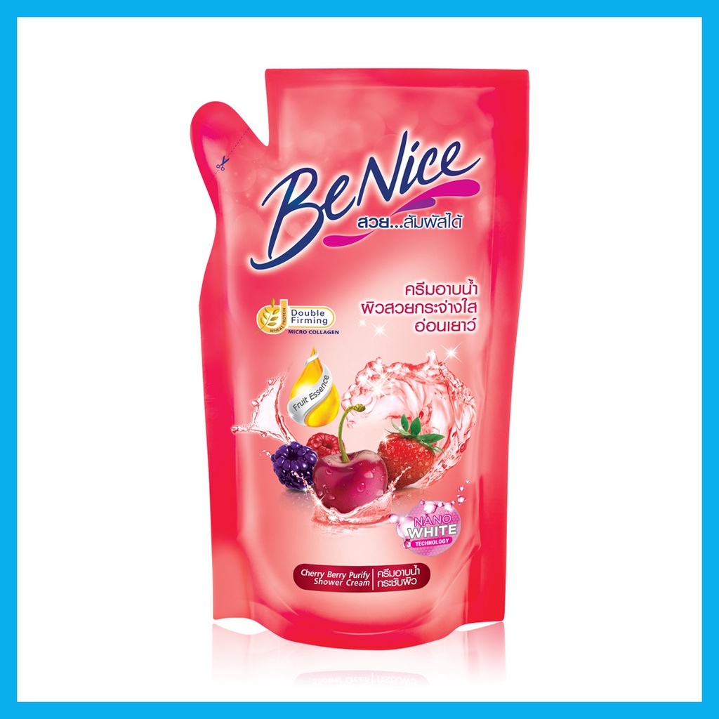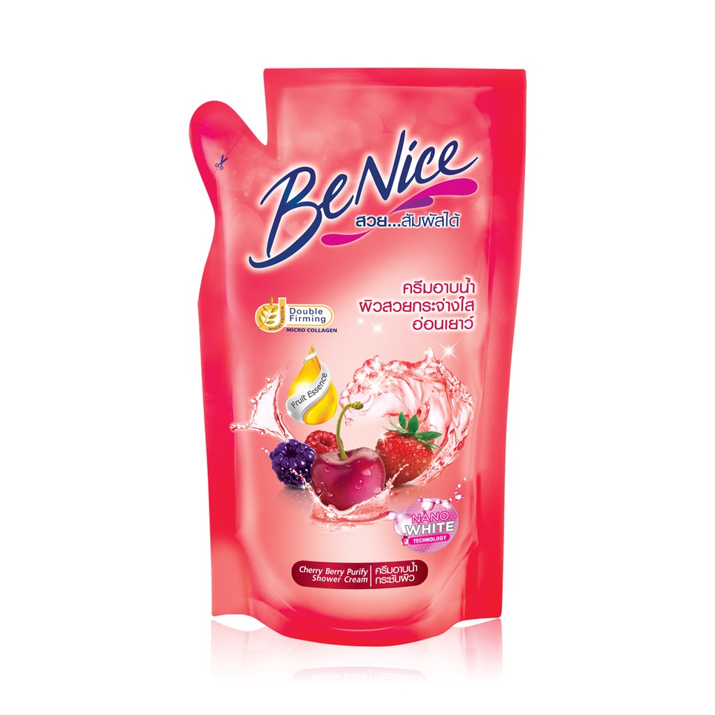 Cr: Facebook.com/BeNiceThailandBeNice Shower Cream Cherry Berry 400ml(Refill)ครีมอาบน้ำกระชับผิว ที่ผสานคุณค่าจากฟรุต เอสเซนส์สารสกัดจากผลไม้ สูตรเฉพาะของบีไนซ์ ประกอบด้วย 2 พลังผลไม้สีแดง เชอร์รี่ และตระกูลเบอร์รี่หลายชนิด ช่วยทำความสะอาดผิวอย่างอ่อนโยน พร้อมบำรุงผิวให้ดูกระจ่างใสอย่างเป็นธรรมชาติ เผยผิวสวย กระจ่างใส อ่อนเยาว์