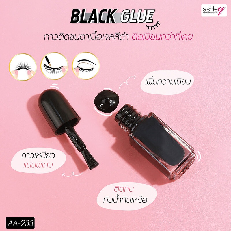 Cr. facebook.com/AshleycosmeticsthailandAshley Eyelash Black Glue 6ml กาวติดขนตาปลอมเนื้อกาวสีดำ ติดแน่น เนียนไปกับขนตาปลอม แห้งไวไม่เป็นคราบ กันน้ำ ติดทนนานยิ่งขึ้น