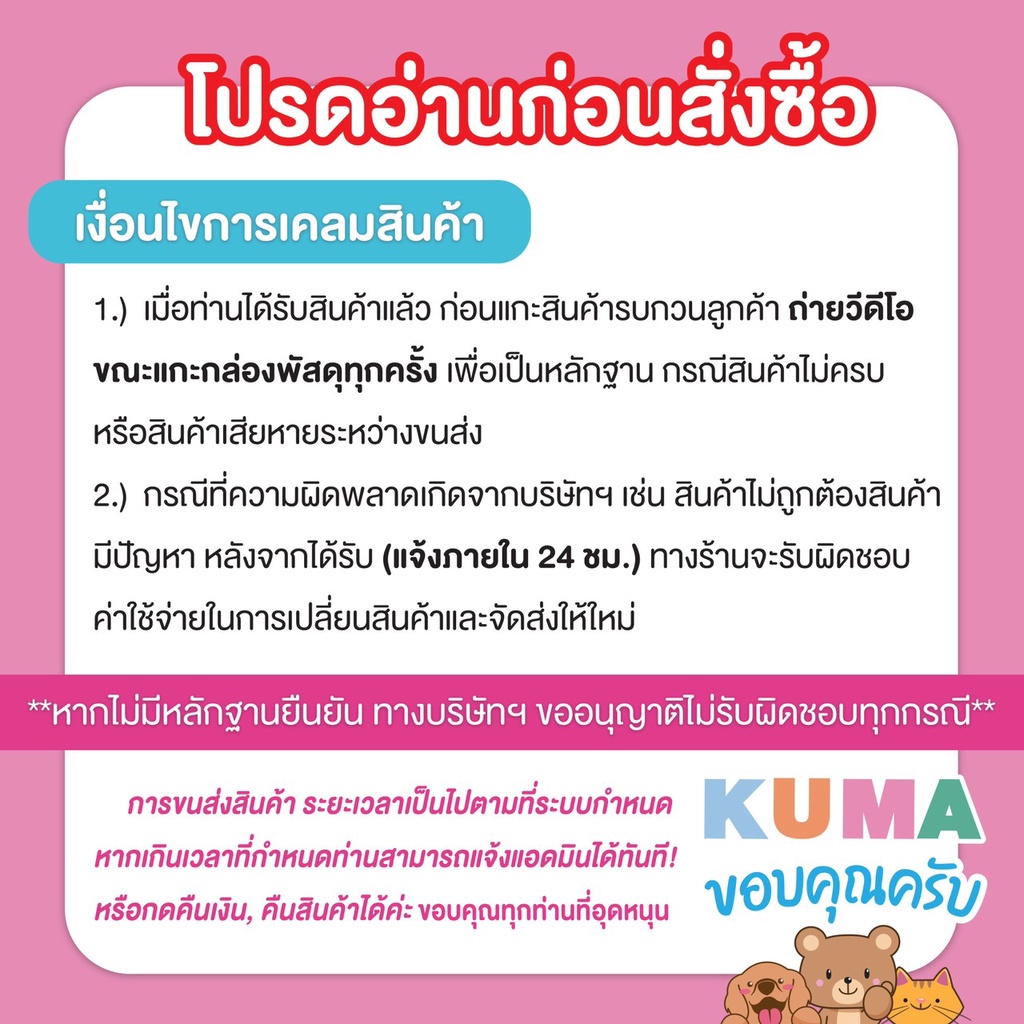 ***อย่าพึงรีวิวนะคะ ถ้ารีวิวไปแล้ว จะไม่สามารถเคลมได้ค่ะ ขอบคุณที่อุดหนุนคุมะค่ะ