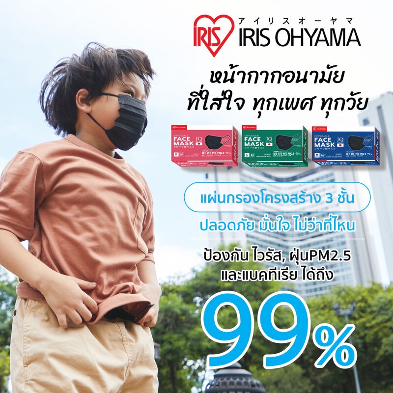 • มีแผ่นกรอง 3 ชั้น อนุภาค 0.1 ไมครอน 99%