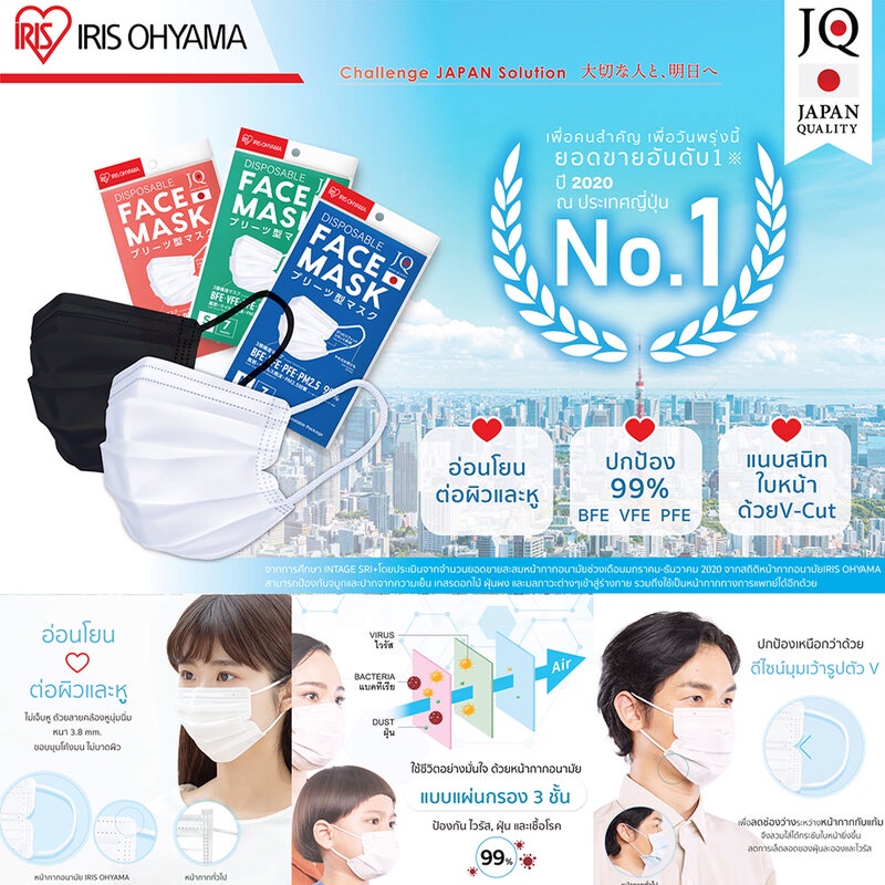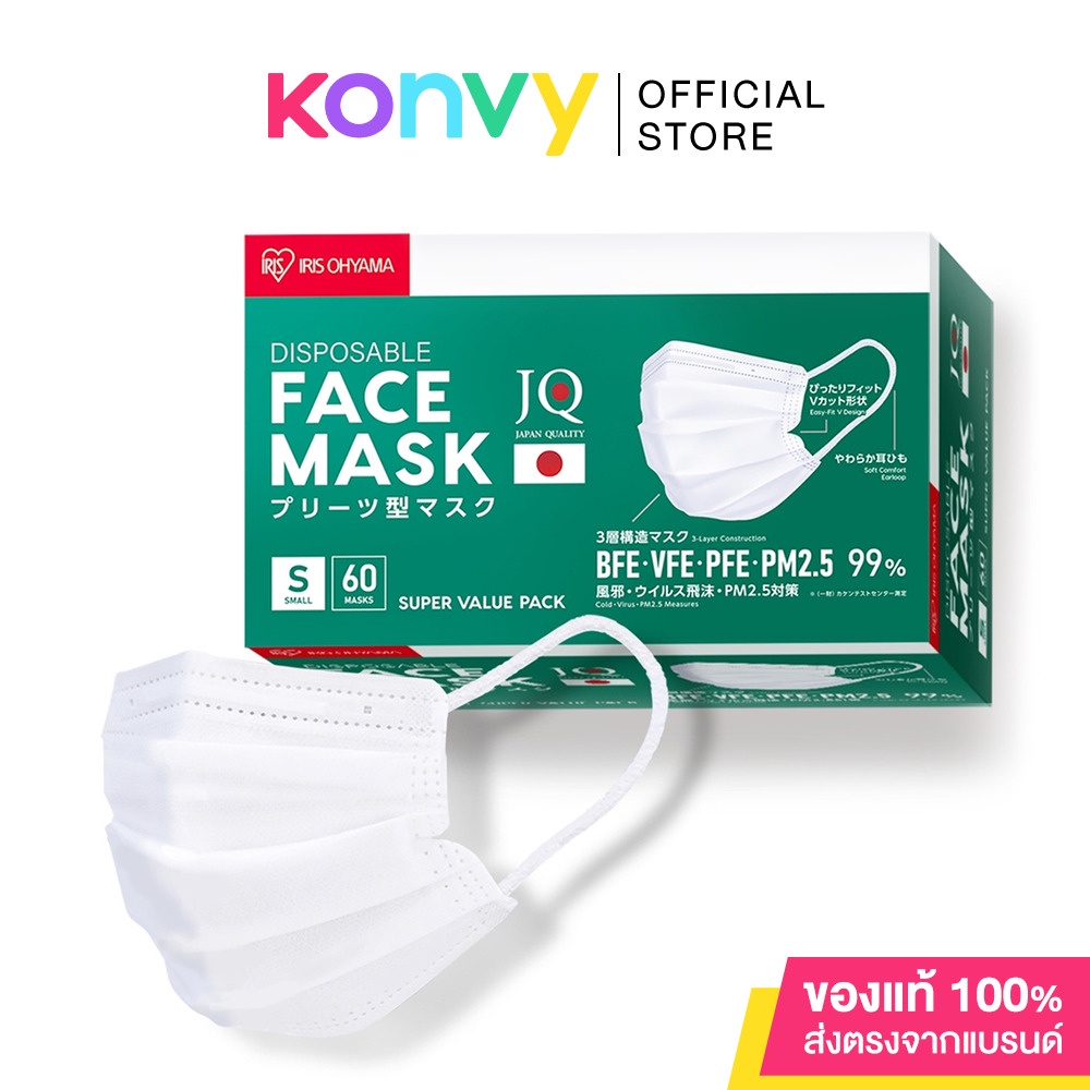 Cr:Facebook.com/IrisohyamaTHIRIS OHYAMA Disposable Face Mask Size S [60pcs] หน้ากากอนามัย ไซส์ S ด้วยประสิทธิภาพแผ่นกรองหนา 3 ช่วยป้องกันเชื้อโรค ไวรัสและฝุ่นละออง PM 2.5 ได้ถึง 99% การออกแบบหน้ากาก V-cut หรือมุมเว้าด้านข้างแก้มช่วยกระชับใบหน้า ป้องกันฝุ่นละอองเล็ดลอดเข้าสู่ด้านใน มาพร้อมกับสายรัดนุ่มสบายหูและทรงขอบโค้งมนอ่อนโยนต่อใบหน้า