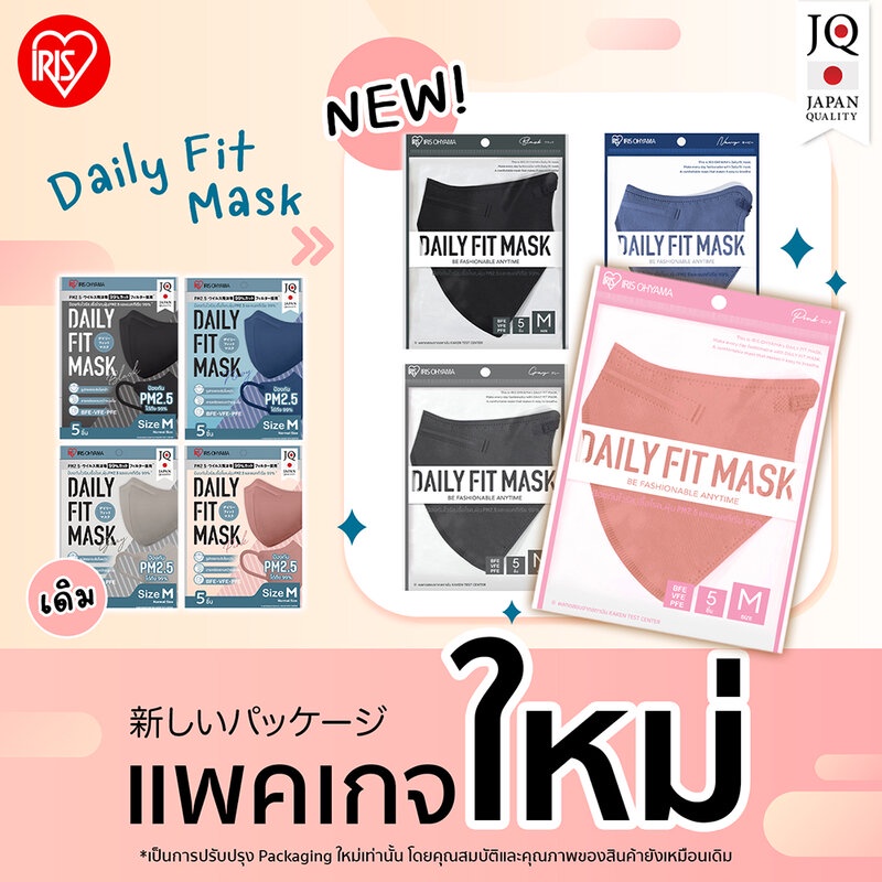 IRIS OHYAMA Disposable Face Mask Daily Fit [12.5g x 5pcs]#Pink หน้ากากอนามัยสีชมพูรุ่น Daily Fit กระชับใบหน้า สวมใส่สบาย เหมาะสำหรับผู้ใหญ่ ประสิทธิภาพแผ่นกรองหนา 3 ชั้น ช่วยป้องกันเชื้อโรค ไวรัส และฝุ่นละออง PM 2.5 ได้มากถึง 99% โดดเด่น ไม่เหมือนใคร มาพร้อมกับสายรัดนุ่มสบายหูและทรงขอบโค้งมนอ่อนโยนต่อใบหน้า ใส่แล้วดูรูปหน้าเรียว สวย ดูดีทั้งผู้ชายและผู้หญิง เลือกใส่สี ที่เข้ากับชุด และบุคลิกของคุณ• รุ่น Daily Fit กระชับใบหน้า สวมใส่สบาย