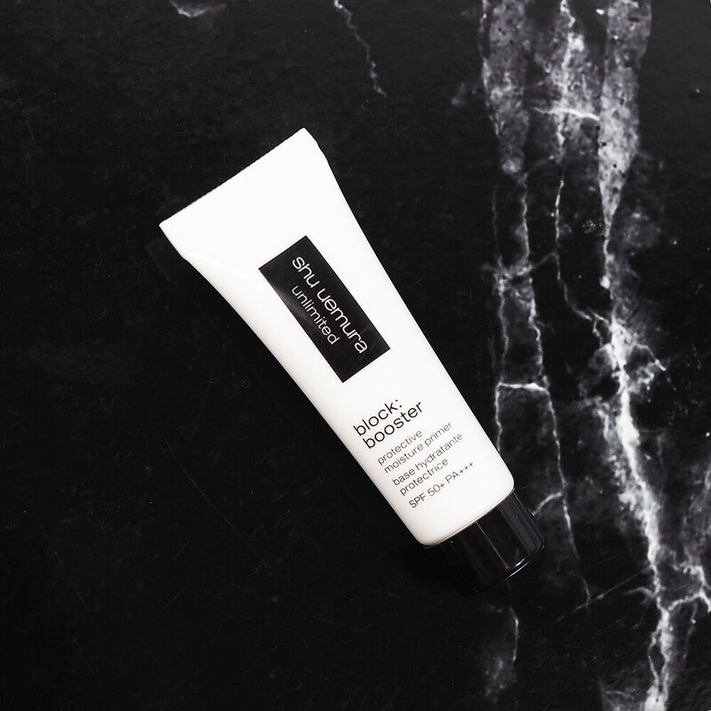 Cr.shuuemura.com.hkShu Uemura Block: Booster Protective Moisture Primer SPF50+ PA+++ 10ml #Anzu Beige ไพรเมอร์สูตรใหม่ ช่วยปรับโทนสีผิวของคุณให้แลดูสว่างใสขึ้นอย่างเป็นธรรมชาติ พร้อมเสริมประสิทธิภาพของรองพื้น
