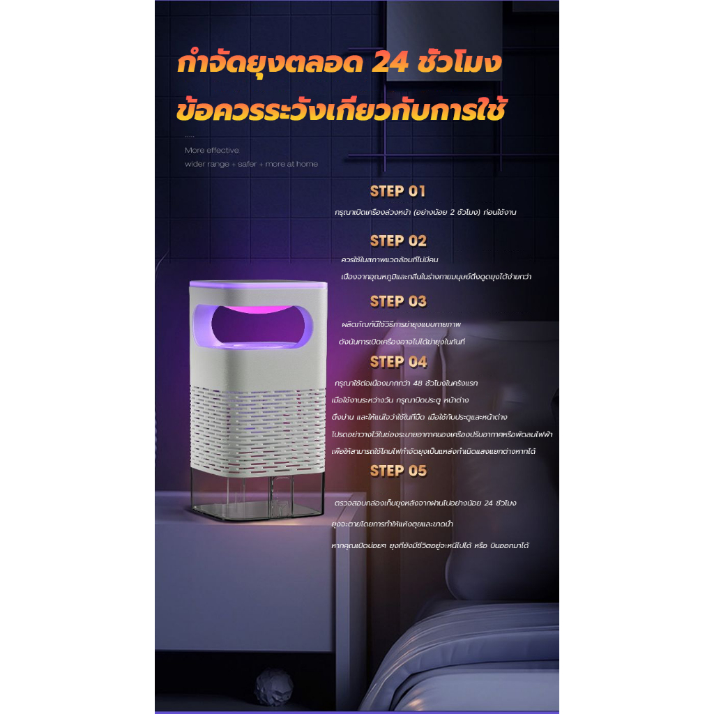 ข้อดีของเครื่องกําจัดยุง1. ใช้มอเตอร์ดูดขนาดใหญ่เพื่อสับอากาศรอบ ๆ และยุงจะสูดอากาศลงที่กล่อง