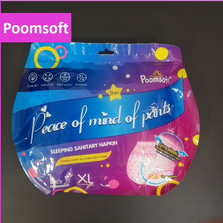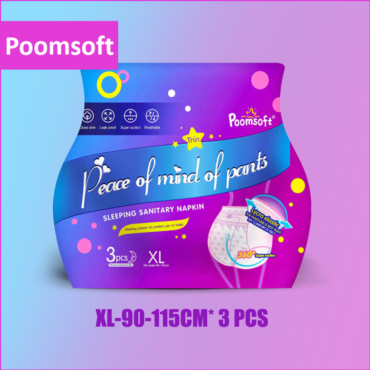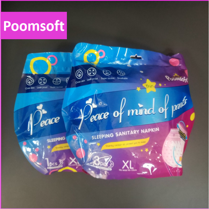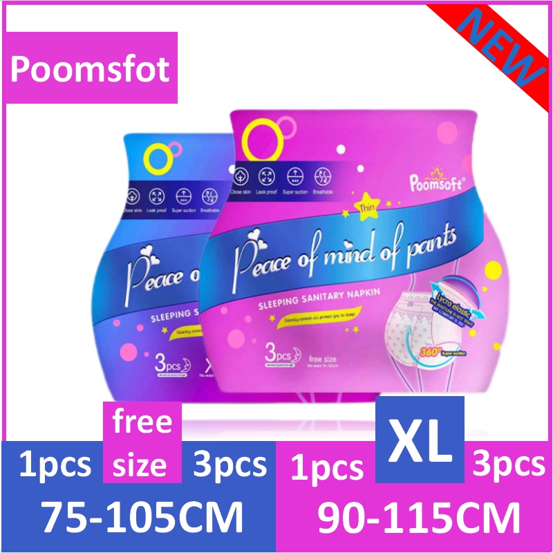 poomsoftผ้าอนามัยกางเกง ผ้าอนามัยแบบกางเกง ผ้าฝ้ายไม่ทอผ้า รุ่นฟรีไซส์และ XL 1pcs/3pcs การป้องกันรอบด้าน 360° อ่อน กันรัขนาด: