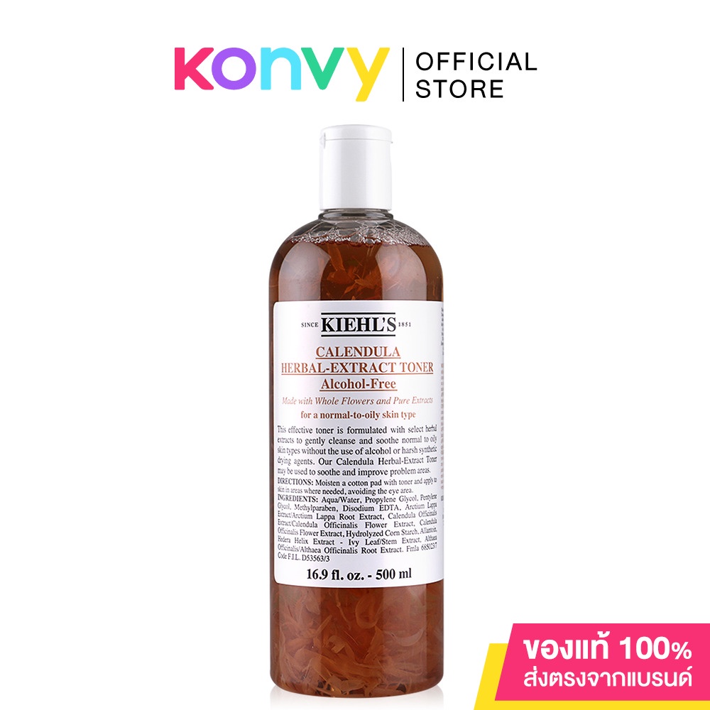 Kiehl's Calendula Herbal Extract Toner Alcohol-Free250mlโทนเนอร์ทรงประสิทธิภาพสูตรไร้แอลกอฮอล์ สำหรับทุกสภาพผิว รวมถึงผิวแพ้ง่าย อุดมไปด้วยส่วนผสมของกลีบดอกคาเลนดูล่า (ดาวเรือง), สารสกัดได้จากรากสมุนไพรคัมฟรี และเกรท เบอร์ด็อก (พืชตระกูลหญ้าเจ้าชู้) ช่วยเพิ่มประสิทธิภาพในการทำความสะอาดผิว พร้อมคุณสมบัติในการปลอบประโลมให้นุ่มนวลและรู้สึกสบายผิว ปลุกผิวให้สดชื่นพร้อมรับการบำรุงในขั้นต่อไป• โทนเนอร์สูตรไร้แอลกอฮอล์ สำหรับทุกสภาพผิว - ผิวแพ้ง่าย