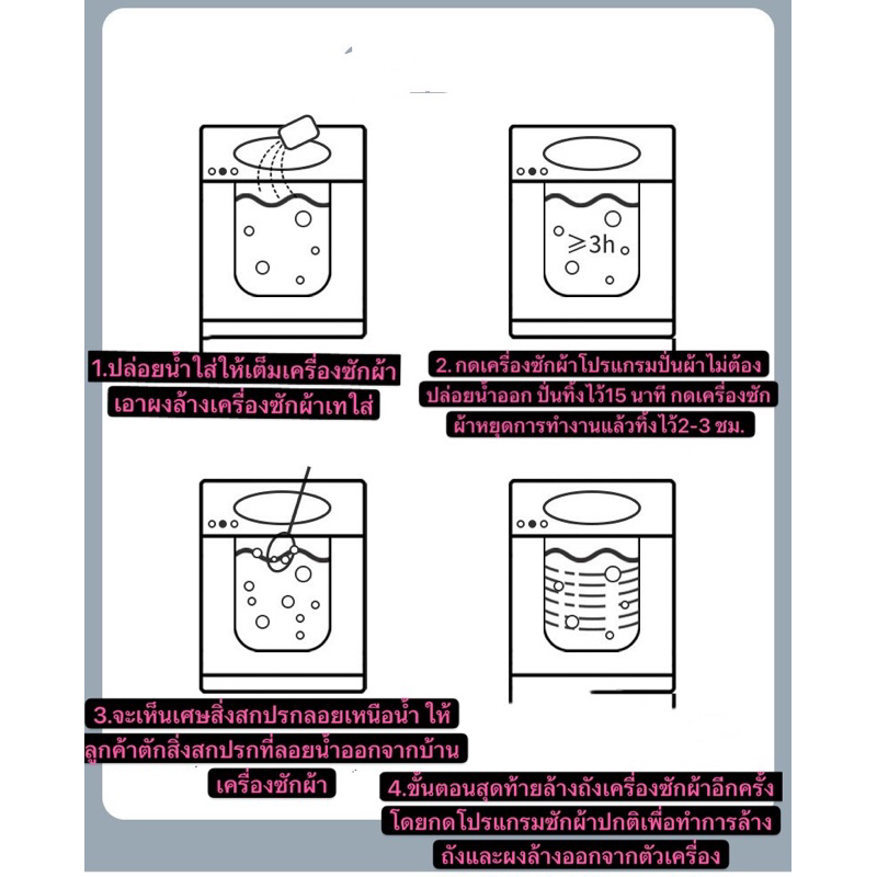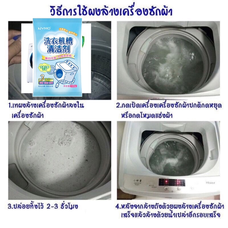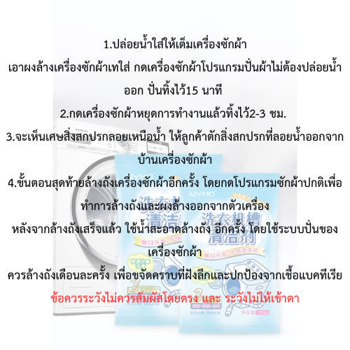 - ใช้ทำความสะอาดเครื่องซักผ้าเป็นประจำ เดือนละครั้ง