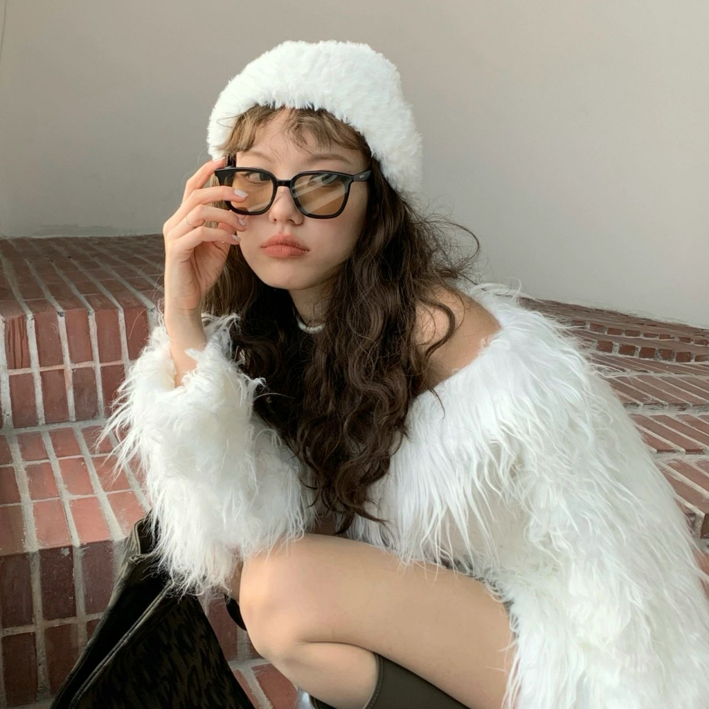 Lovito Kính râm Full rim kèm kính mắt màu trơn phong cách thường ngày l34ad061 (Màu Nâu)