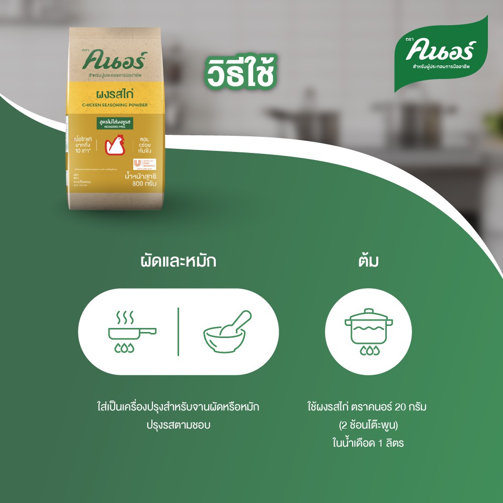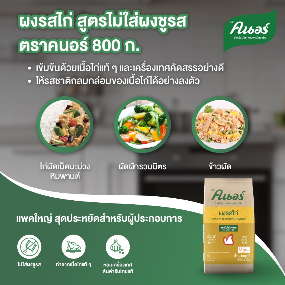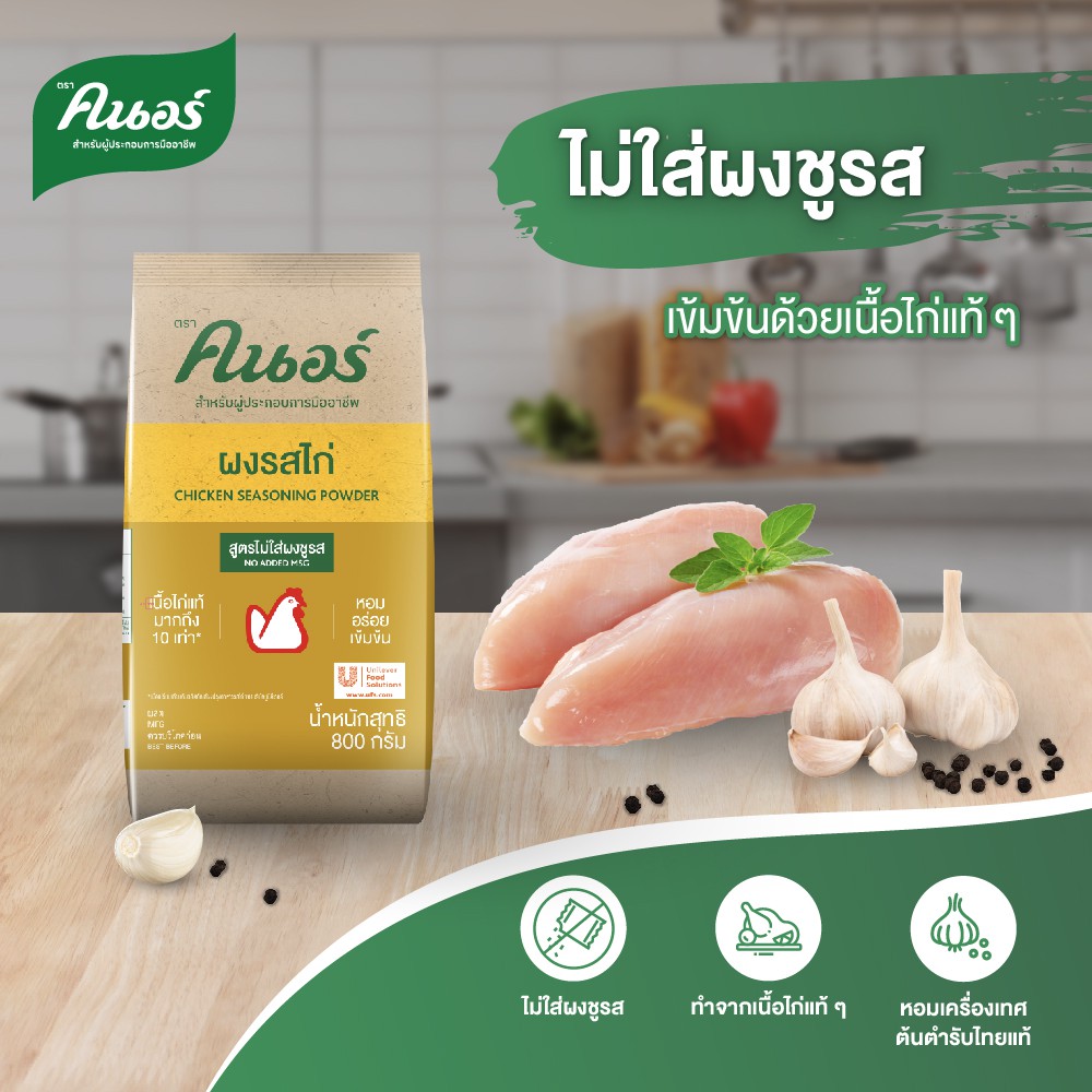 ผงรสไก่ สูตรไม่ใส่ผงชูรส ตราคนอร์ เข้มข้นด้วยเนื้อไก่แท้ๆและเครื่องเทศคัดสรรอย่างดี ให้รสชาติกลมกล่อมของเนื้อไก่ได้อย่างลงตัวในหลากหลายเมนู_x000D__x000D_