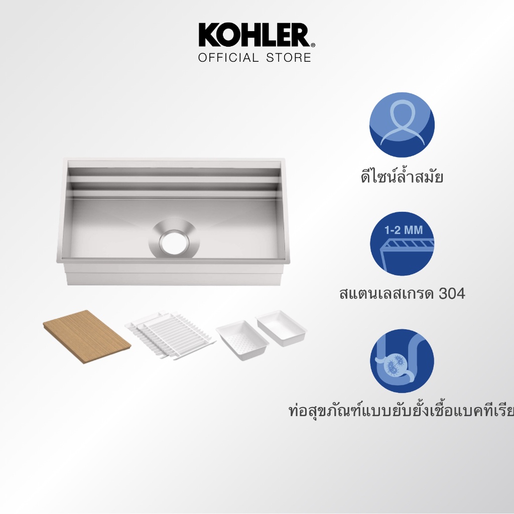 KOHLER K-5540X-S-NA อ่างล้างจานสเตนเลส 1 หลุม แบบฝังใต้เคาน์เตอร์ รุ่น Prolificคุณสมบัติ