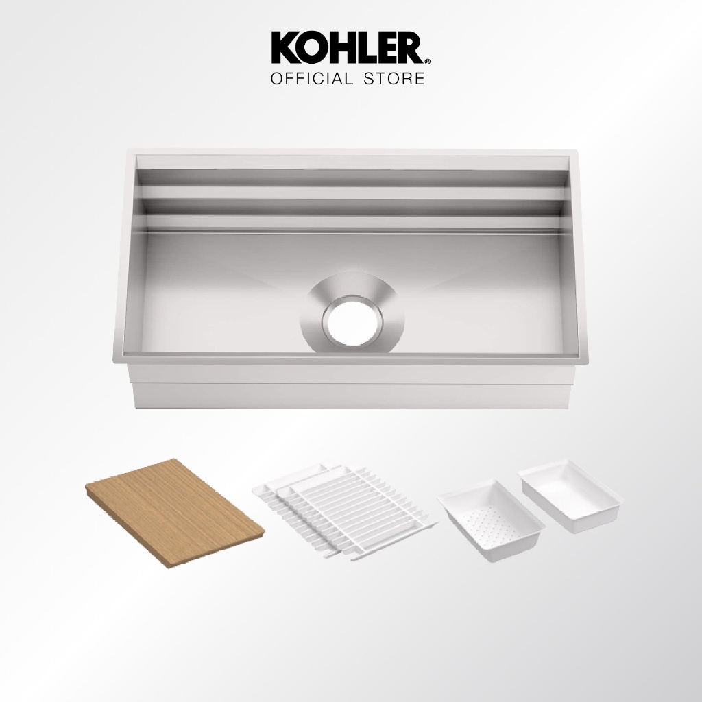 Kohler Prologue 1 bát bồn rửa nhà bếp bằng thép không gỉ K-3884X-C-NA 1 lỗ chuyên nghiệp