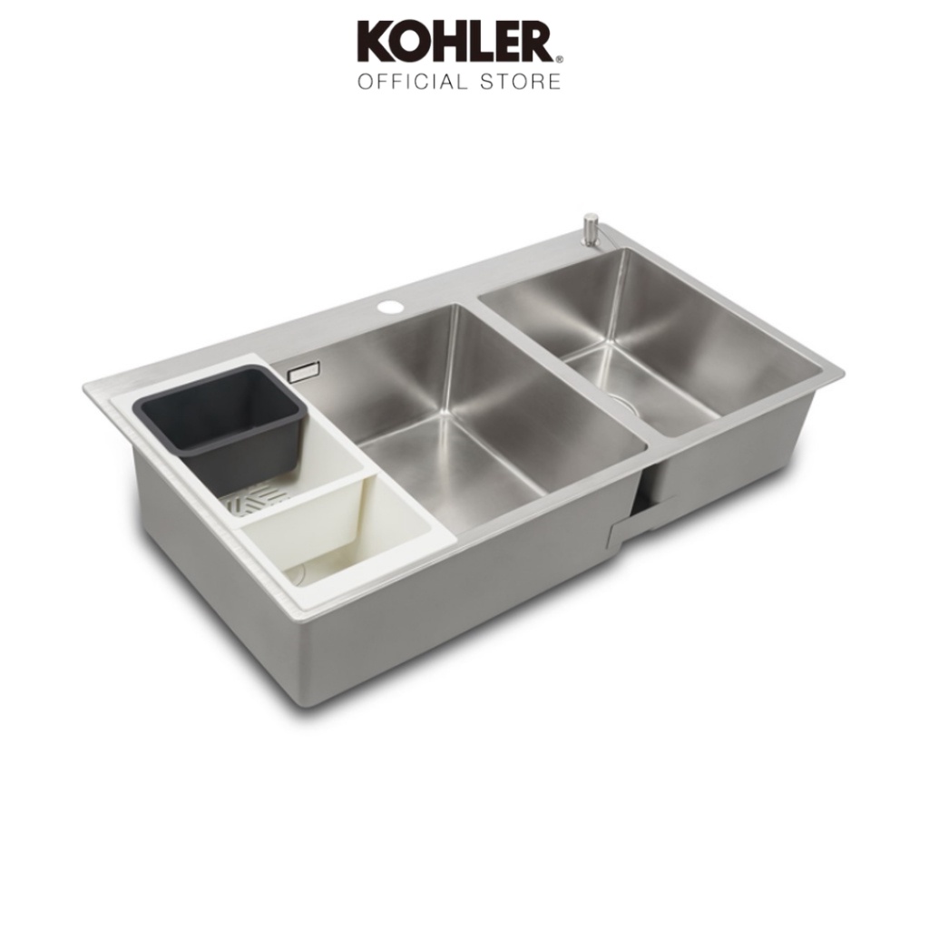 Kohler toccata 1.5 bát có lỗ thoát nước bồn rửa nhà bếp bằng thép không gỉ 1 lỗ K-3644X-2KD-NA gắn mặt bàn