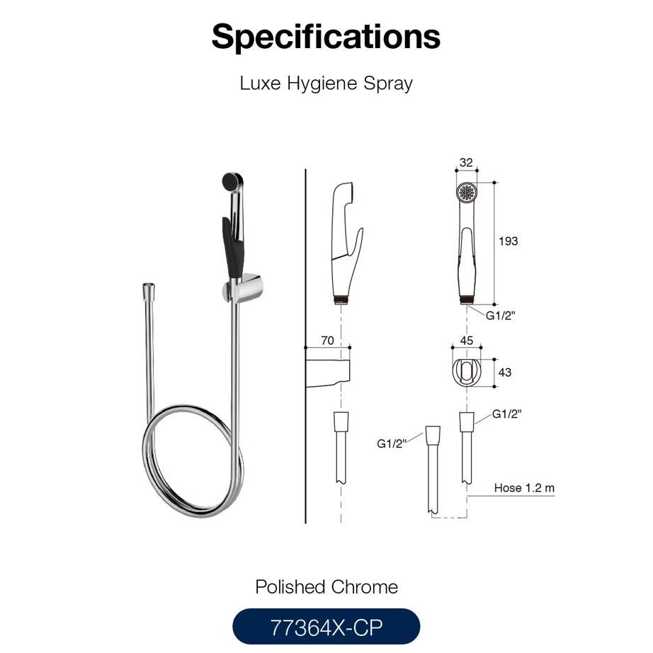 LUXE hygiene spray with hose and fixed wall bracket K-77364X-CPสายฉีดชำระพร้อมสายอ่อนและขอแขวนรุ่นลักซ์ สีโครเมียม