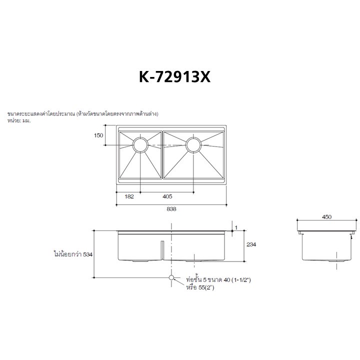 ขนาดเจาะฝังใต้เคาน์เตอร์ : 810 x 422, R11 mm