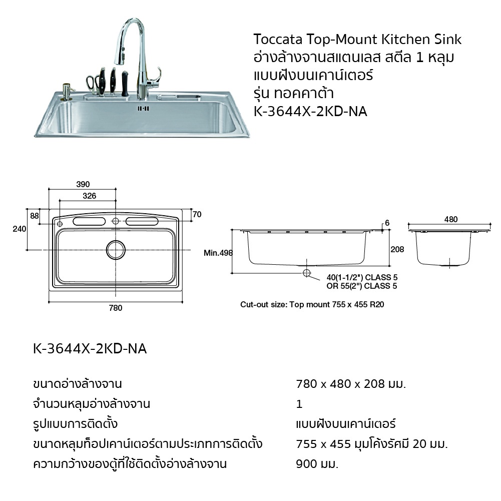 ประเภทการติดตั้ง : ฝังบนเคาน์เตอร์