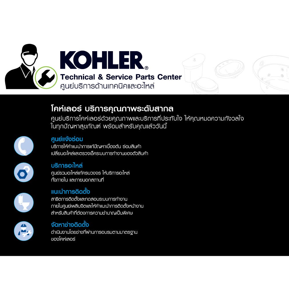 ผลิตจากทองเหลืองคุณภาพดี เคลือบผิวพิเศษจากโคห์เลอร์ คงทน เงางาม