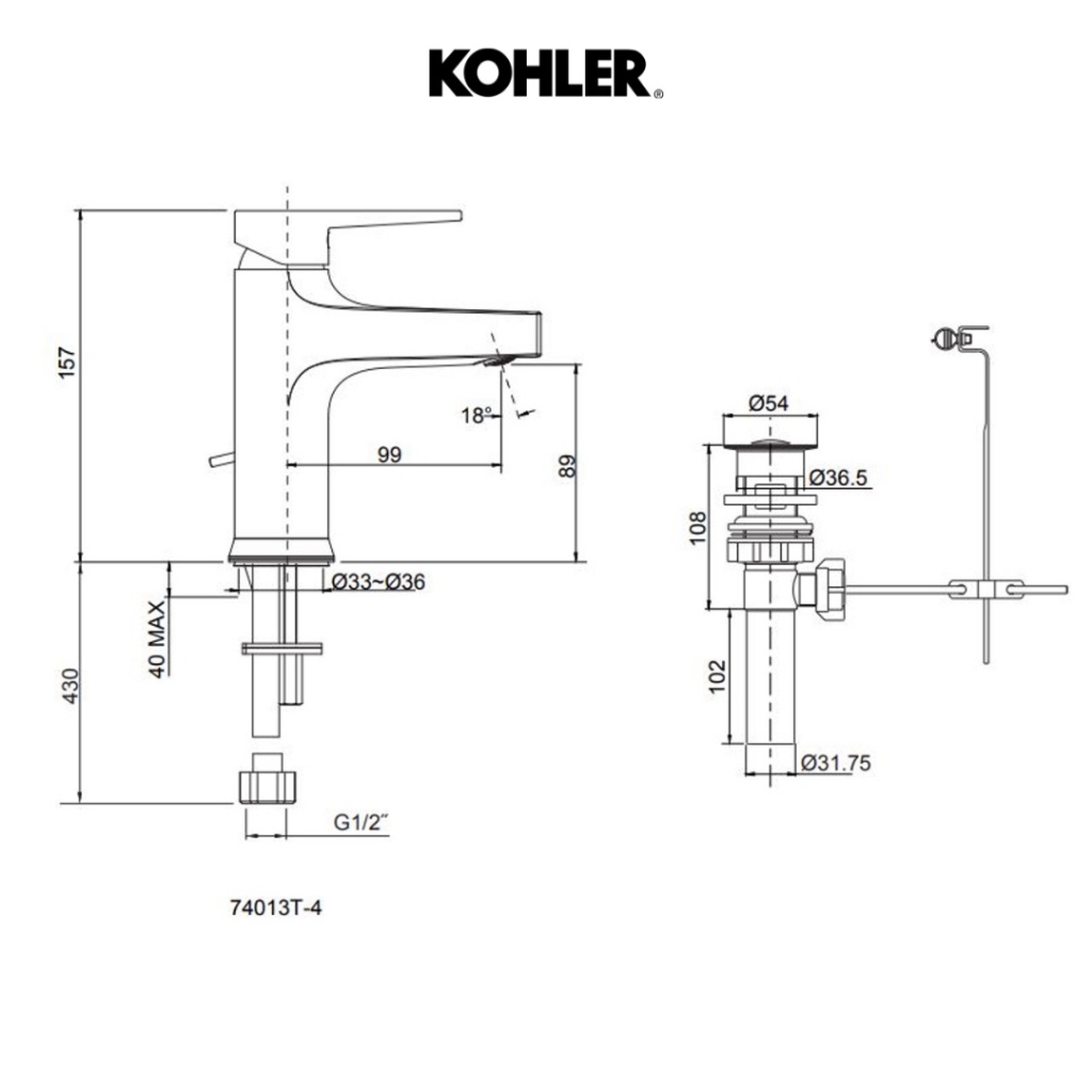 Kohler Vòi nước lạnh nhà vệ sinh vòi chậu rửa K-74013X-4CD-CP mạ crôm