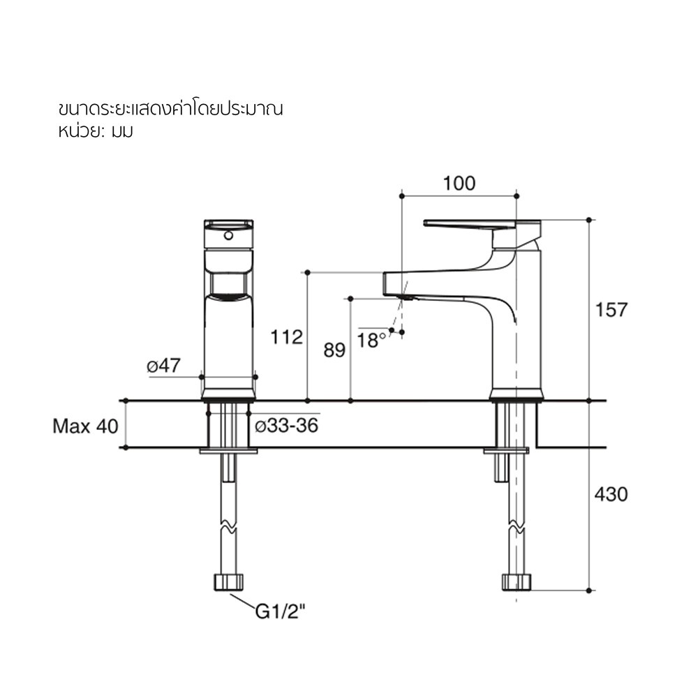 ระยะจากกึ่งกลางตัวก๊อกถึงกึ่งกลางปากก๊อก 100 มม.