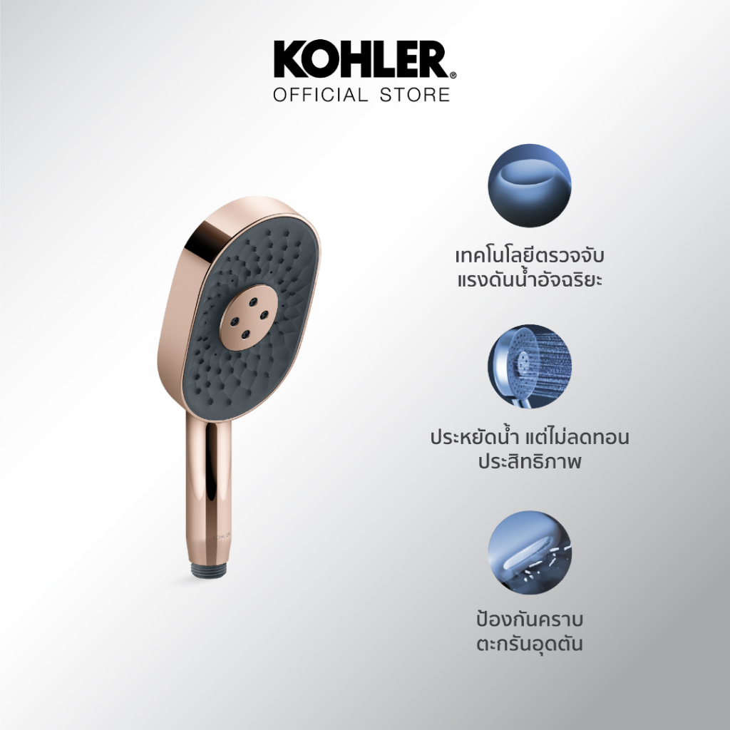 STATEMENT OBLONG HANDSHOWER W/ WATERMIND ROSE GOLD K-28695T-RGDสเตทเมนท์ หัวฝักบัวแบบทรงรี 3 ระดับ พร้อมเทคโนโลยี Water Mind