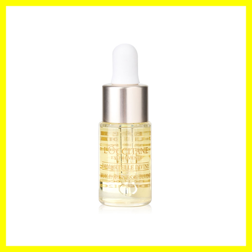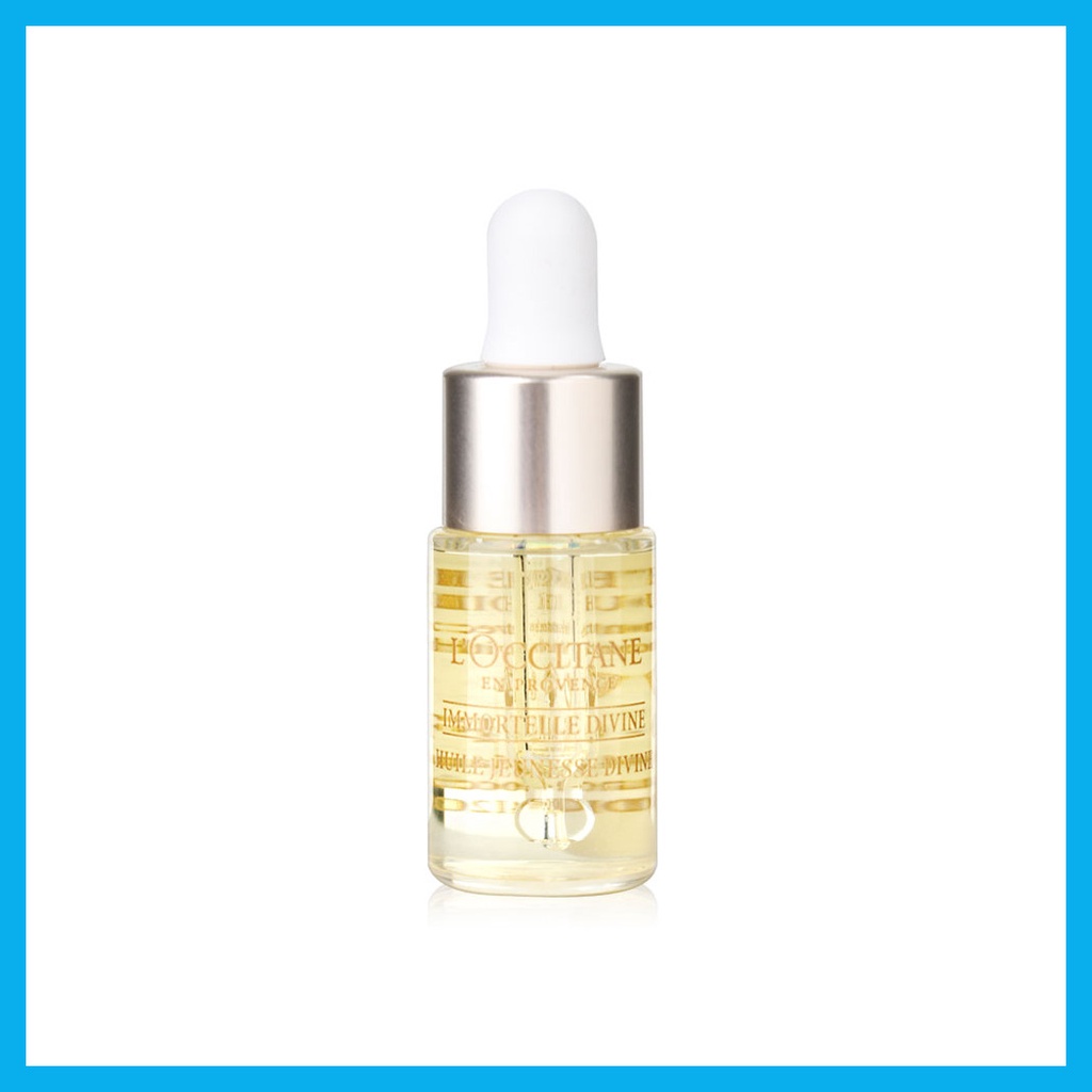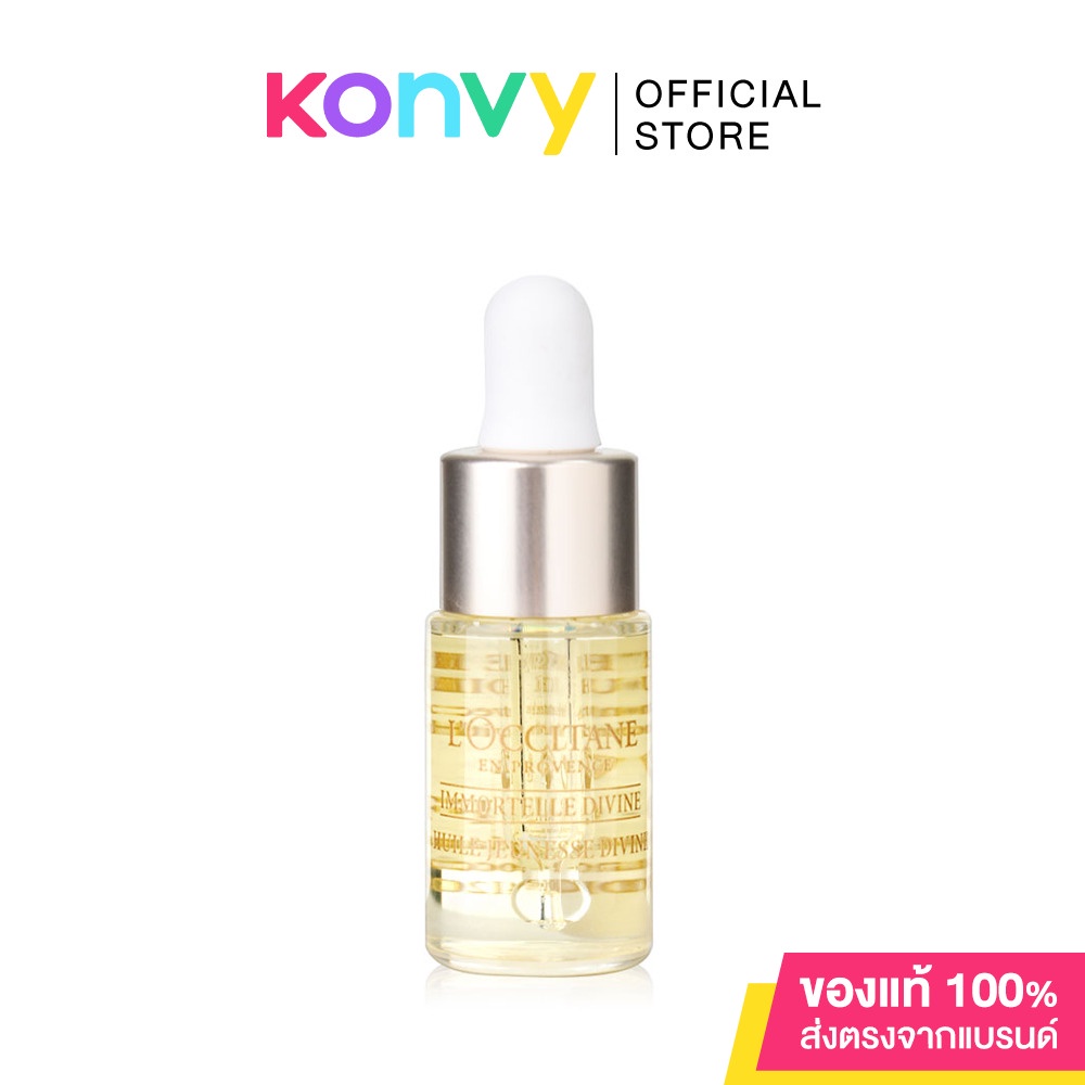 L'Occitane Immortelle Divine Youth Oil 4ml ผลิตภัณฑ์บำรุงผิว ที่อุดมไปด้วยน้ำมันหอมระเหยจาก Immortelle มากกว่าเดิม 10% ช่วยฟื้นฟูทุกปัญหาของผิว ให้ผิวของคุณเรียบเนียนกระชับมากขึ้น เปล่งประกายความอ่อนเยาว์ และริ้วรอยลดเลือนลง• น้ำมันเนื้อละเอียด บางเบา ค่อยๆ ซึมซาบสู่ผิวโดยไม่ทิ้งคราบมัน