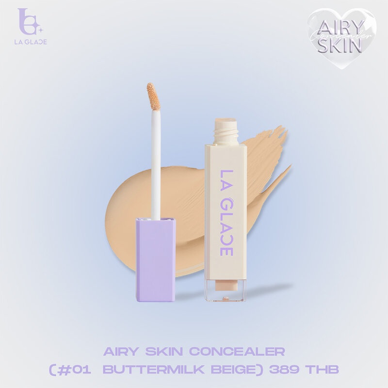 LA GLACE Ideal Airy Skin Concealer 6g #01 Buttermilk Beigeคอนซีลเลอร์เนื้อเซรั่ม ปกปิดแต่บางเบาเนียนไปกับผิว ไม่หนักหน้า อีกทั้งช่วยทำให้ใต้ตาดูฟูขึ้นจากนวัตกรรม Light Diffusion ช่วยหักเหแสง เนื้อคอนซีลเลอร์เกลี่ยง่าย เหมาะกับมือใหม่หัดแต่ง• คอนซีลเลอร์สัมผัสบางเบา