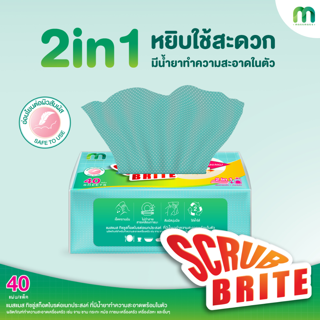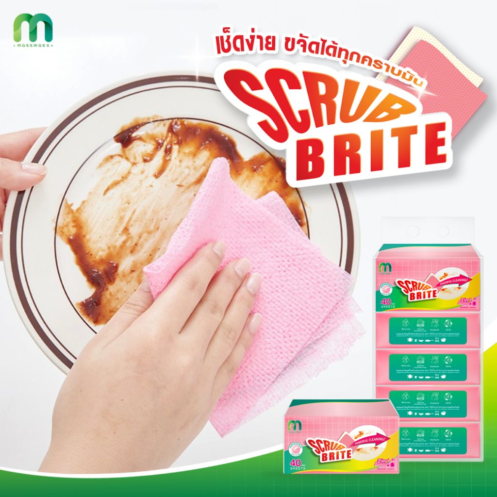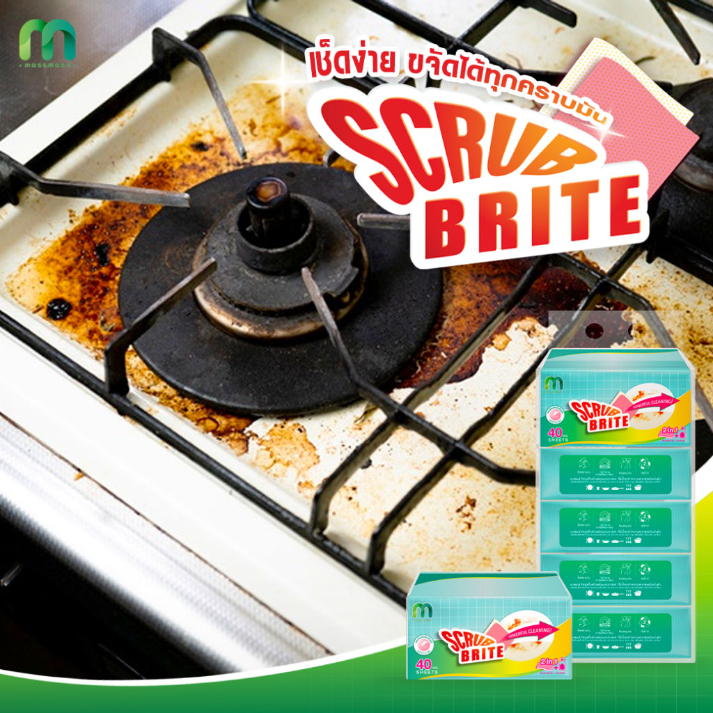 Scrub Brite สครับไบรต์แผ่นใยทำความสะอาดอเนกประสงค์น้ำยาในตัวแบบ 2 in 1 เช็ดง่ายขจัดได้ทุกคราบมัน