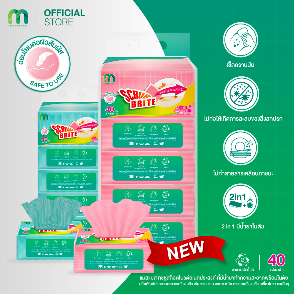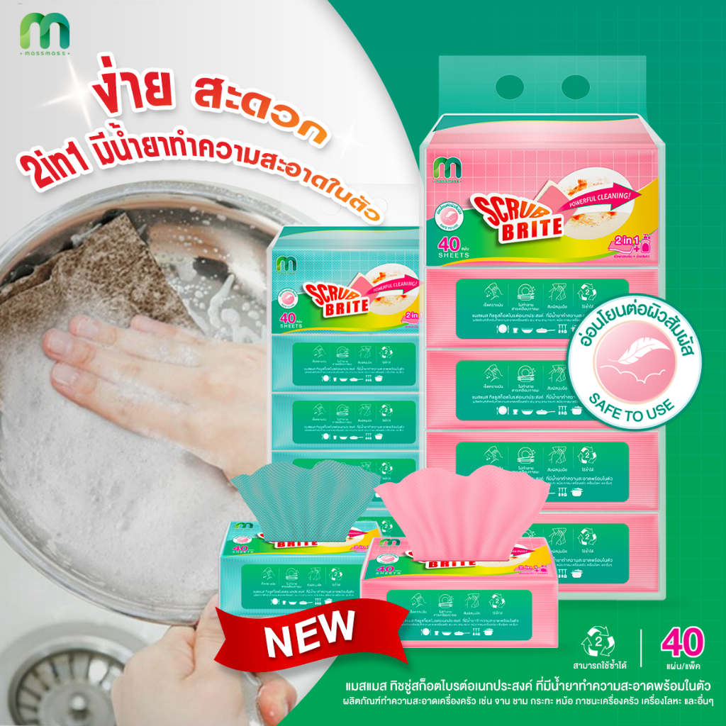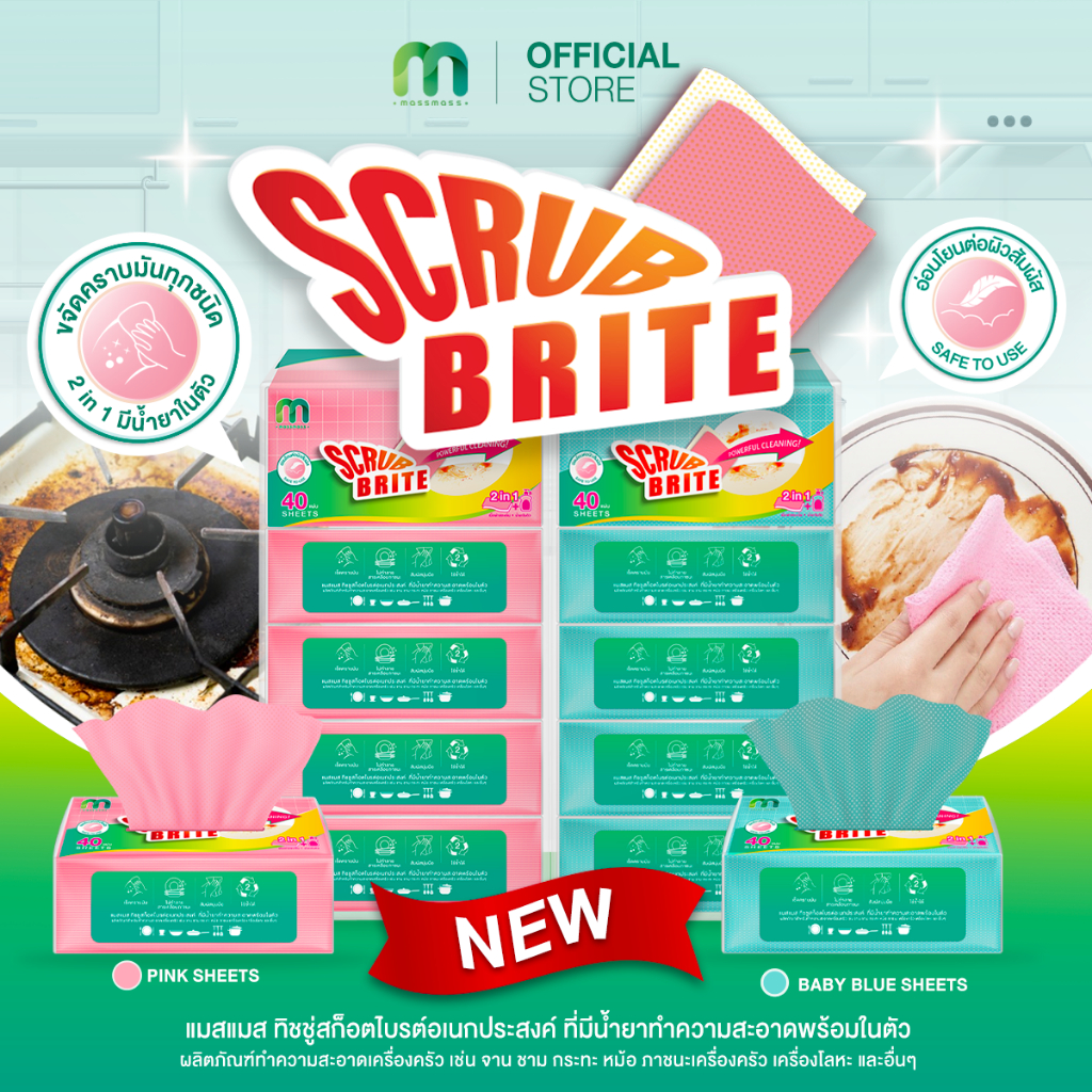 Scrub Brite สครับไบรต์แผ่นใยทำความสะอาดอเนกประสงค์น้ำยาในตัวแบบ 2 in 1 เช็ดง่ายขจัดได้ทุกคราบมัน