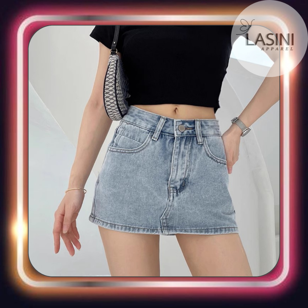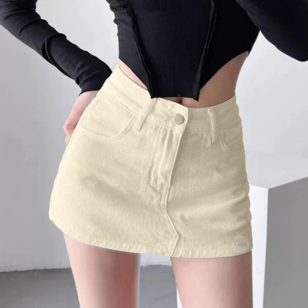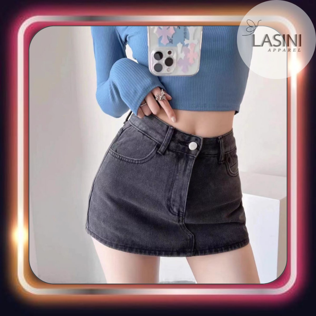 LASINI ใหม่ กางเกงกระโปรงยีนส์แฟชั่น รุ่นนี้ผ้าไม่ยืดนะคะ● มี 3 สีให้เลือก