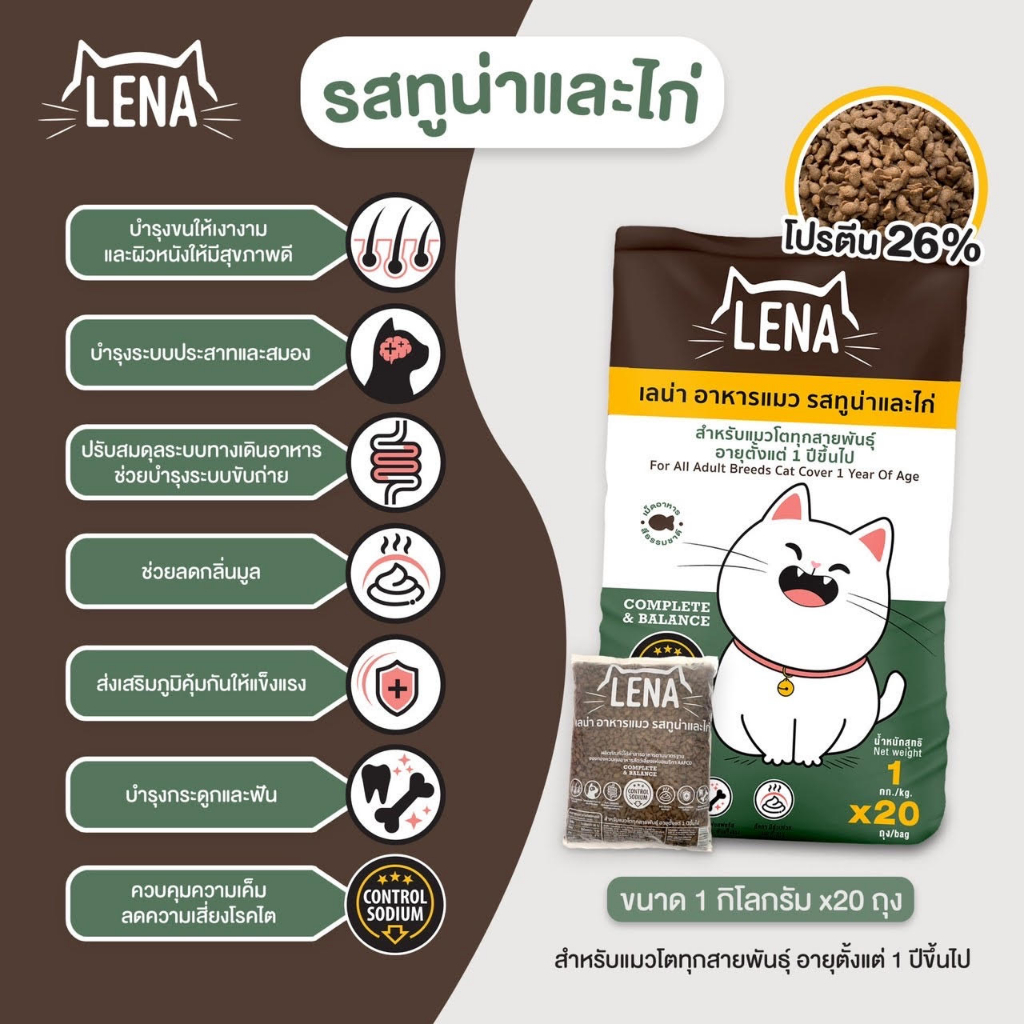 LENA อาหารแมวแบบเม็ด ควบคุมความเค็ม ไม่เติมเกลือ ขนาด 1kg*ถุงแบ่ง 1 กิโลกรัม*