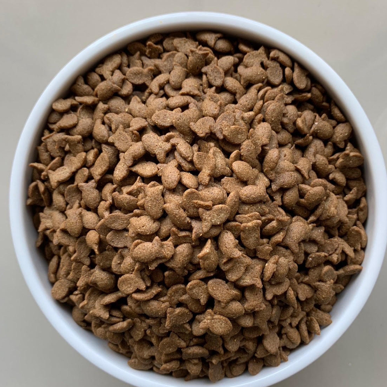 - เม็ดอาหารขนาดกำลังพอดี กรอบ เคี้ยวง่าย ช่วยขัดฟัน ลดคราบหินปูน