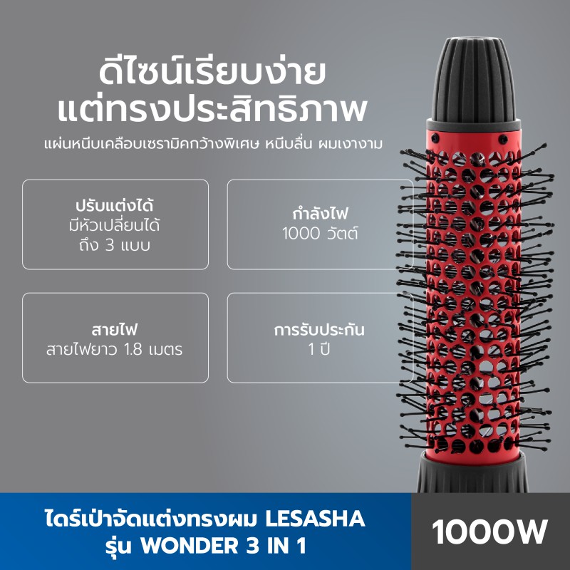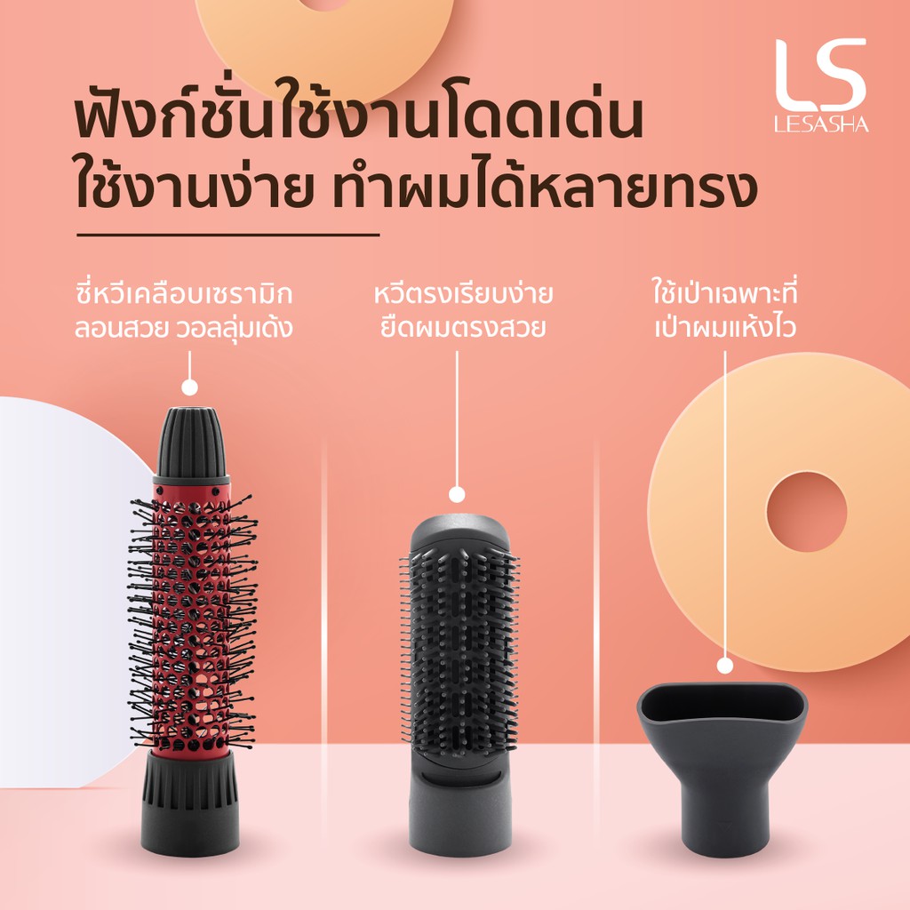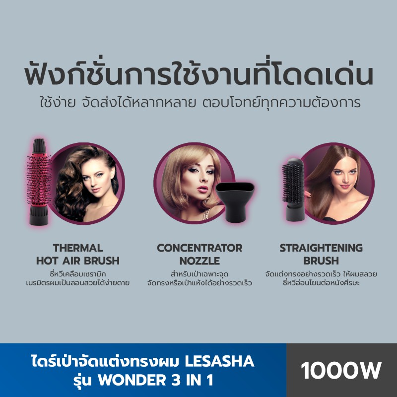 Lesasha ไดร์จัดแต่งทรงผม Wonder 3IN1 Hot Air Styler รุ่น LS1249 Kuronสามารถใช้กับผมหมาดได้