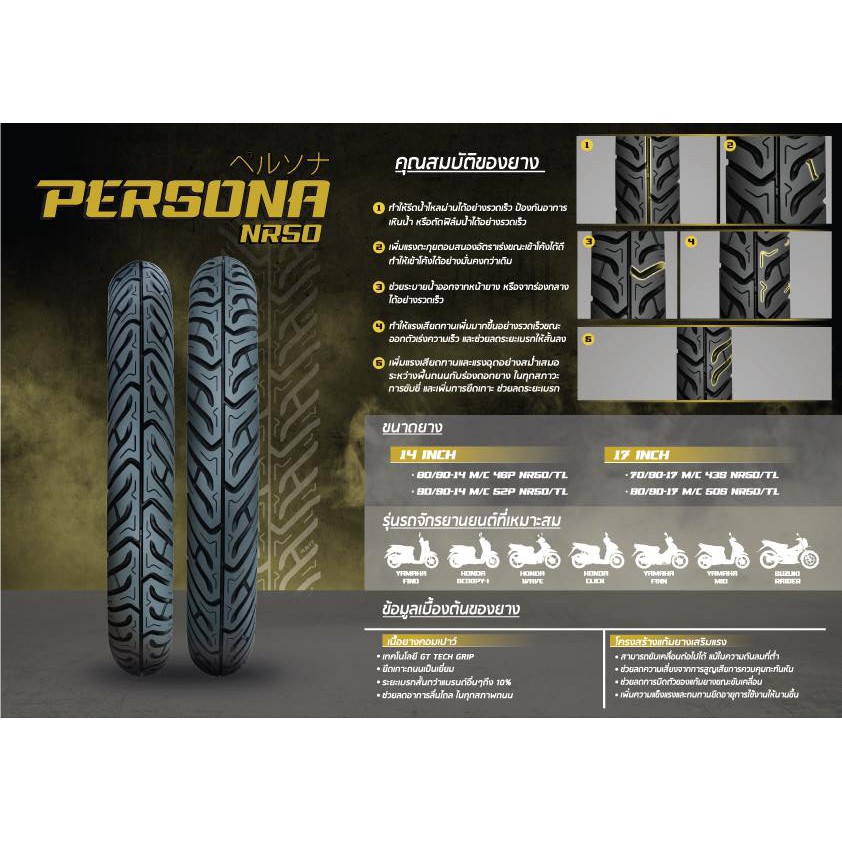 ยางนอก เพอโซน่า NR50 เป็นยาง ซีรีย์ใหม่จาก IRC และใช้เทคโนโลยียางคอมเปาว์ GT Tech Grip