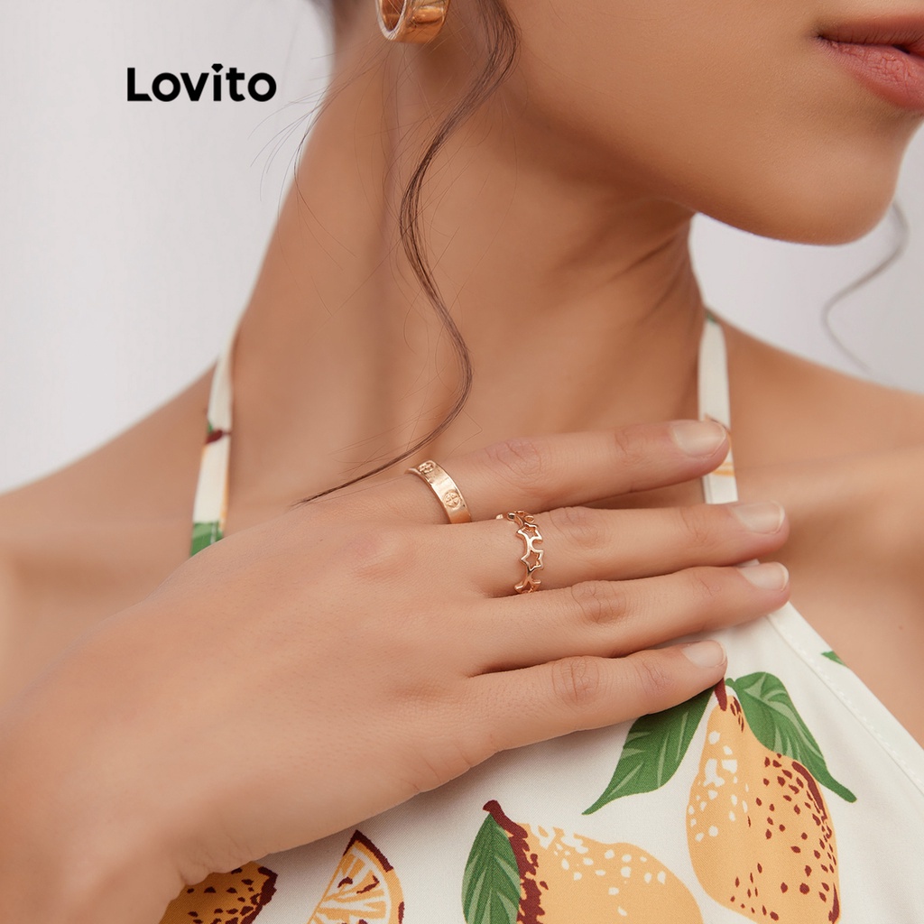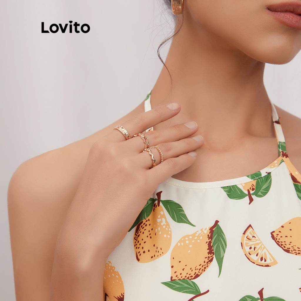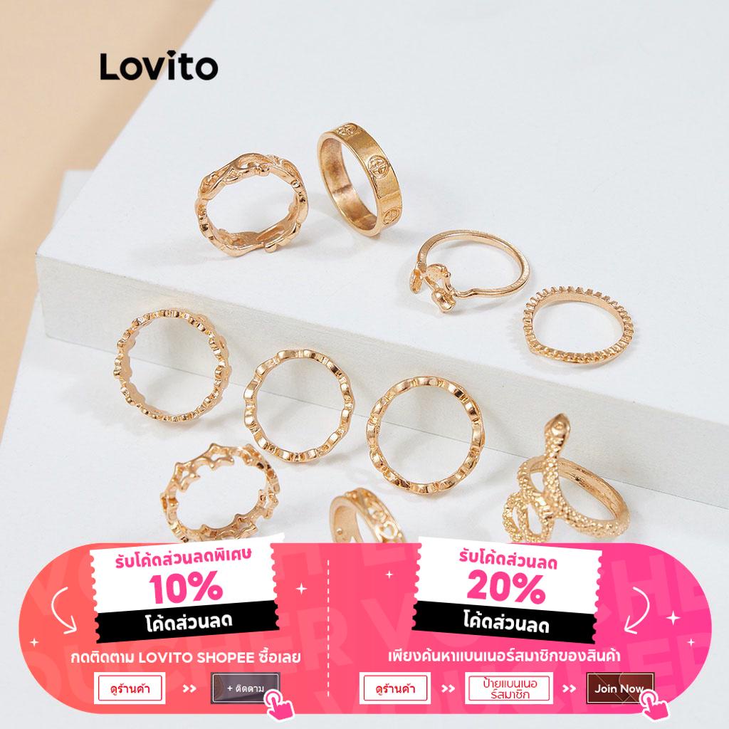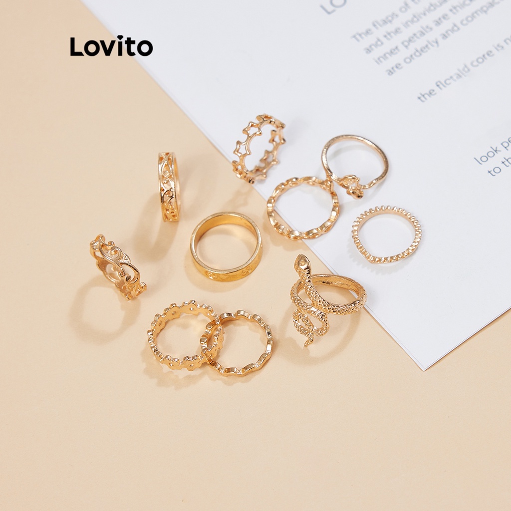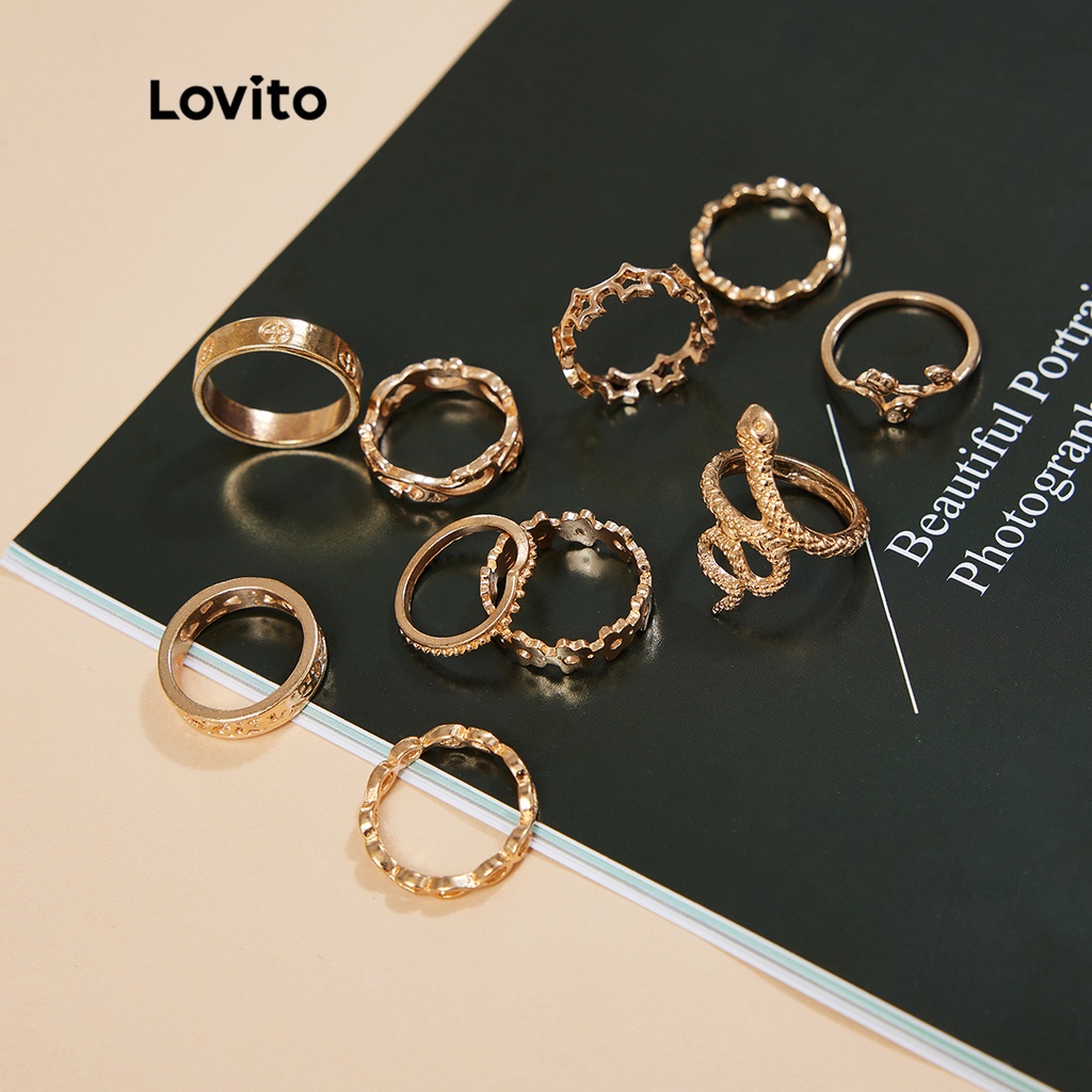Lovito 10 chiếc Nhẫn Phong cách đơn giản đơn giản phối họa tiết rắn l004007 (màu vàng kim)