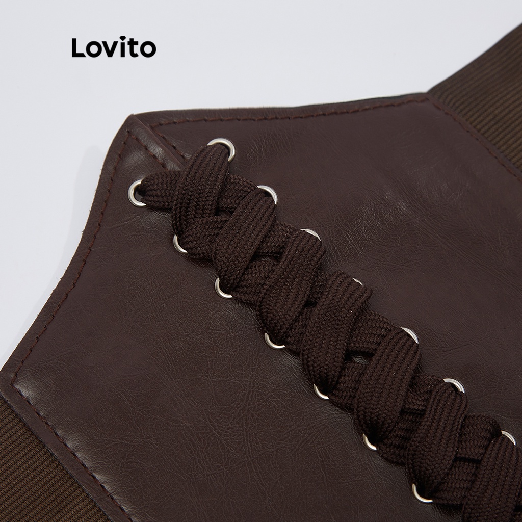 Lovito áo nịt ngực định hình cơ thể màu trơn thường ngày l18x348 (Cà phê/Đen)