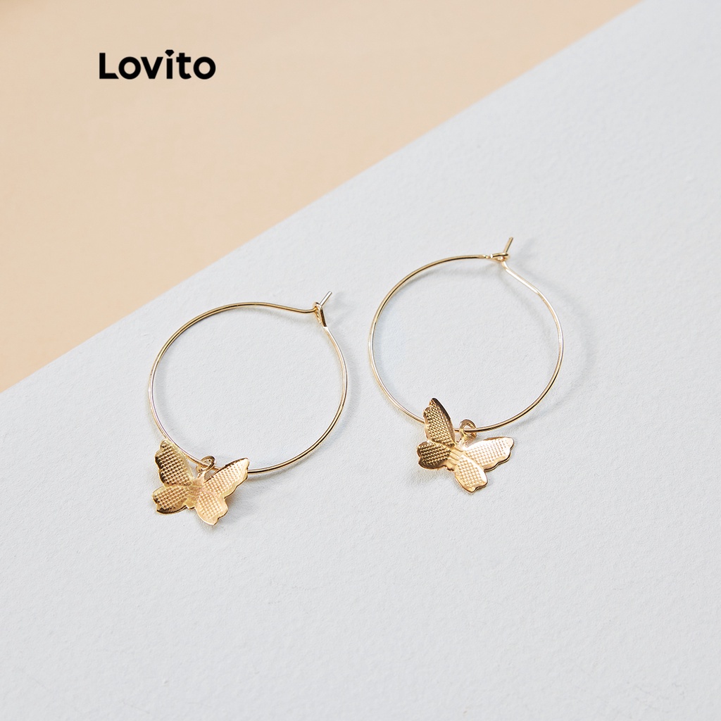 Lovito bông tai kim loại màu trơn thường ngày cho Nữ lfa01130 (Vàng/Bạc)