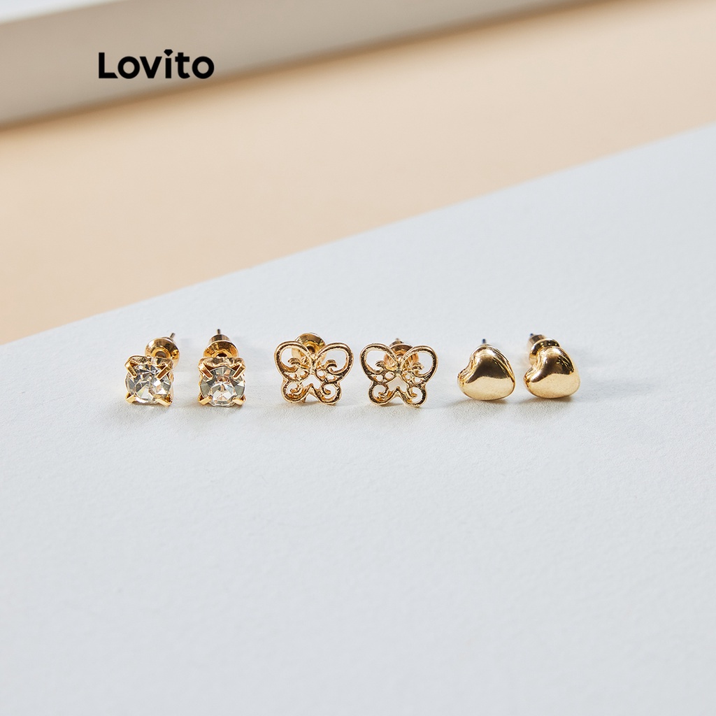 Lovito bông tai kim cương giả màu trơn thường ngày cho Nữ l60ad176 (màu vàng kim)