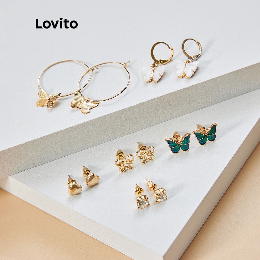 Lovito Bông Tai Nữ 6 bông tai ngọc trai hoa nơ màu trơn thanh lịch lfa16236