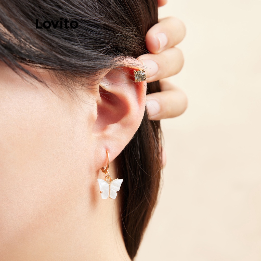 Lovito Khuyên tai mắt mèo trang trí màu tương phản hình học thường ngày cho Nữ lfa09412
