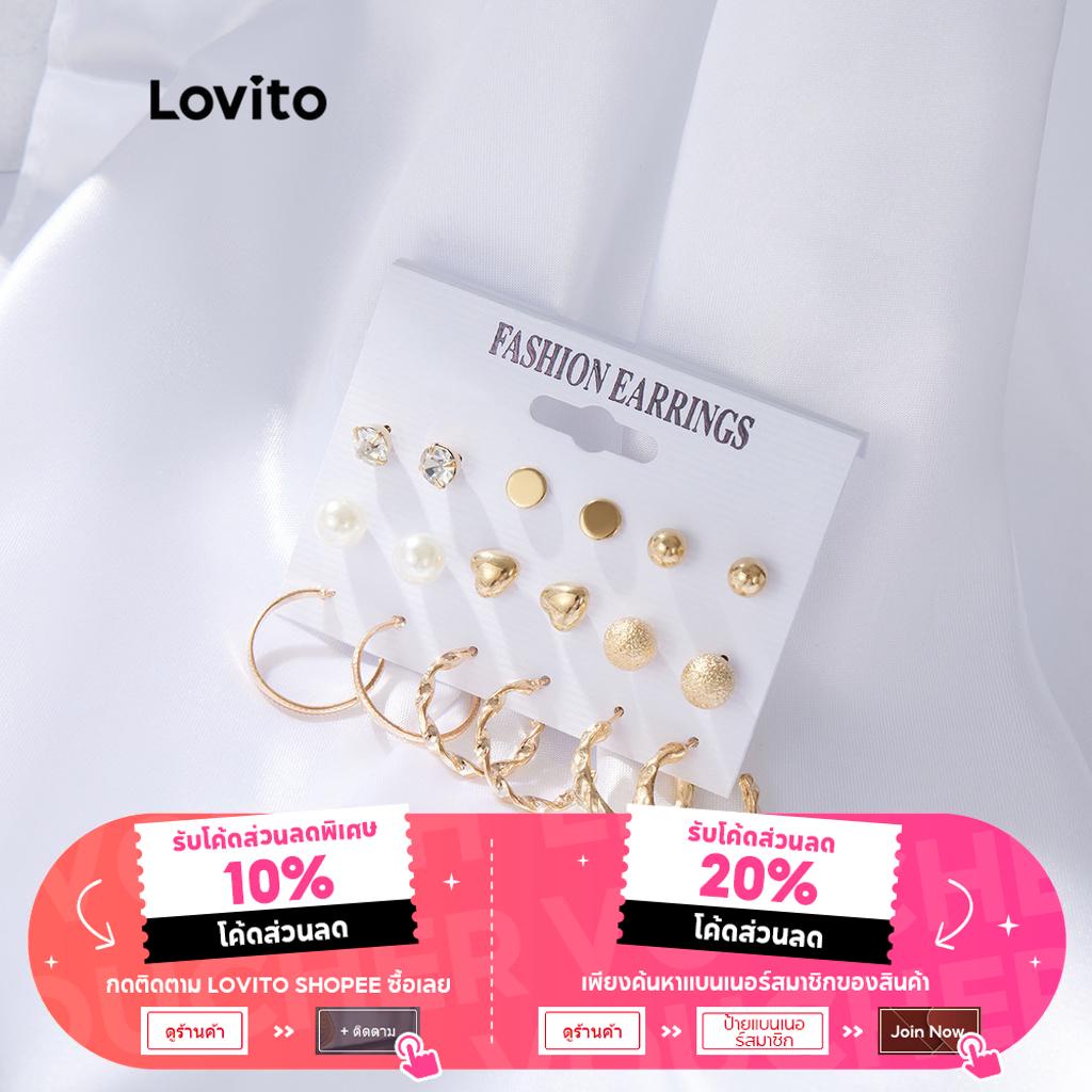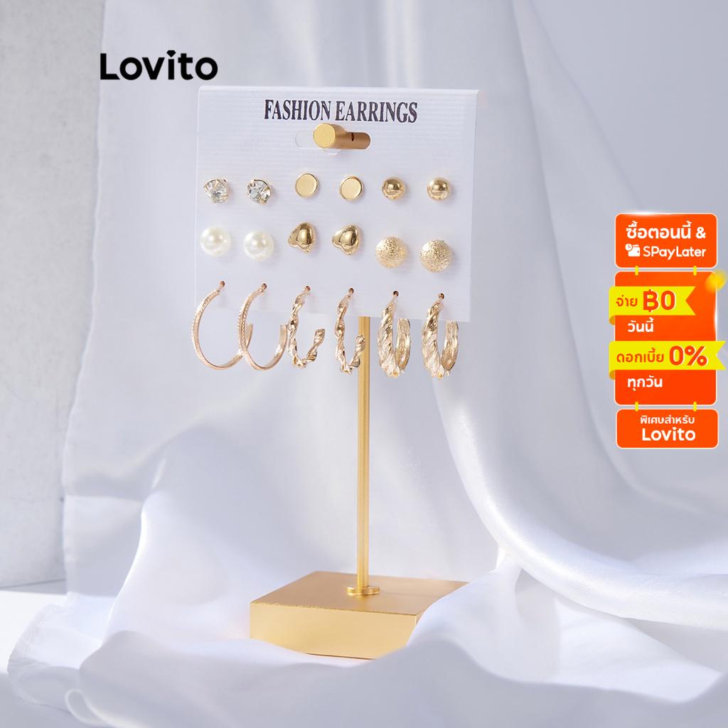 Lovito Bông tai ngọc trai hình học thanh lịch đơn giản cho nữ lfa27055