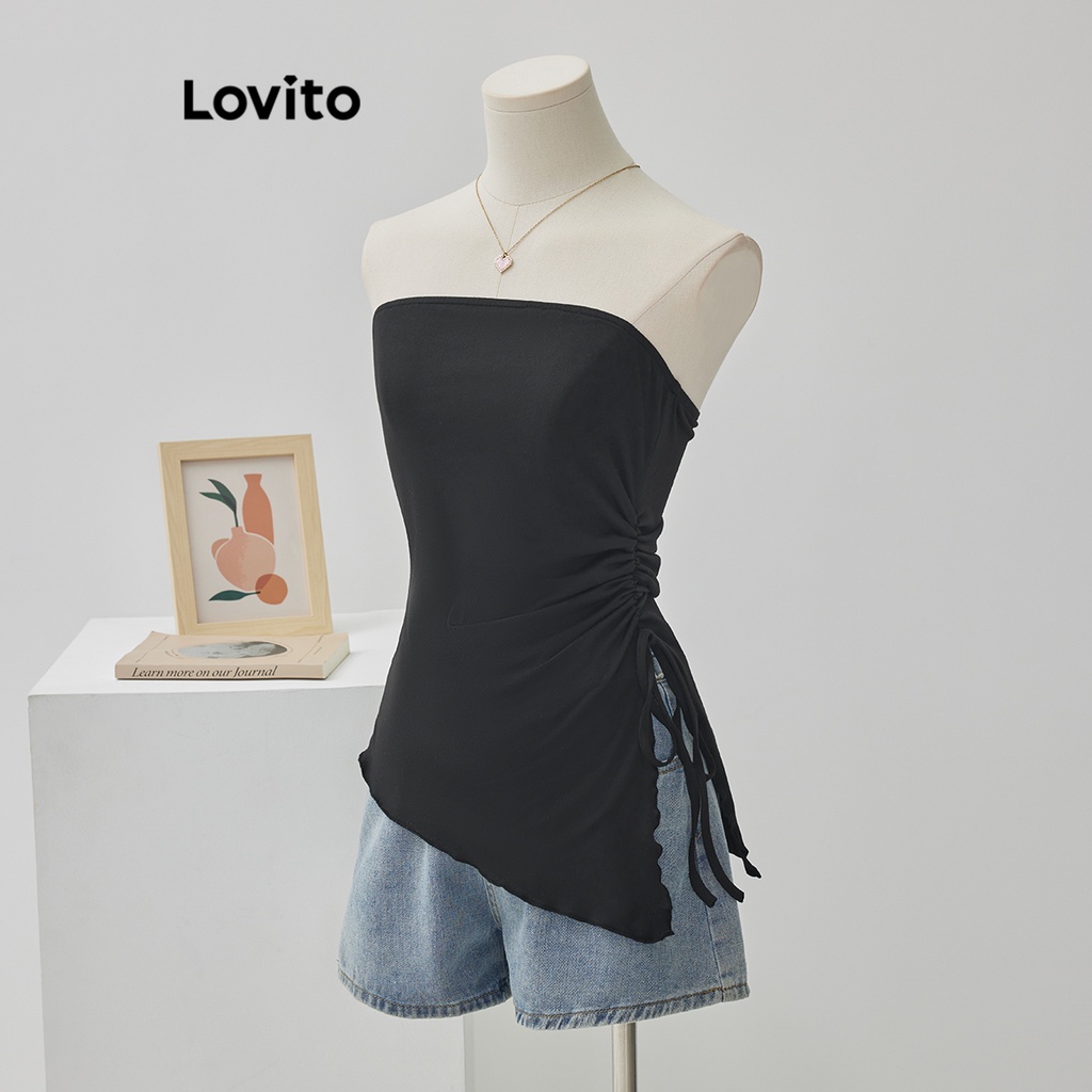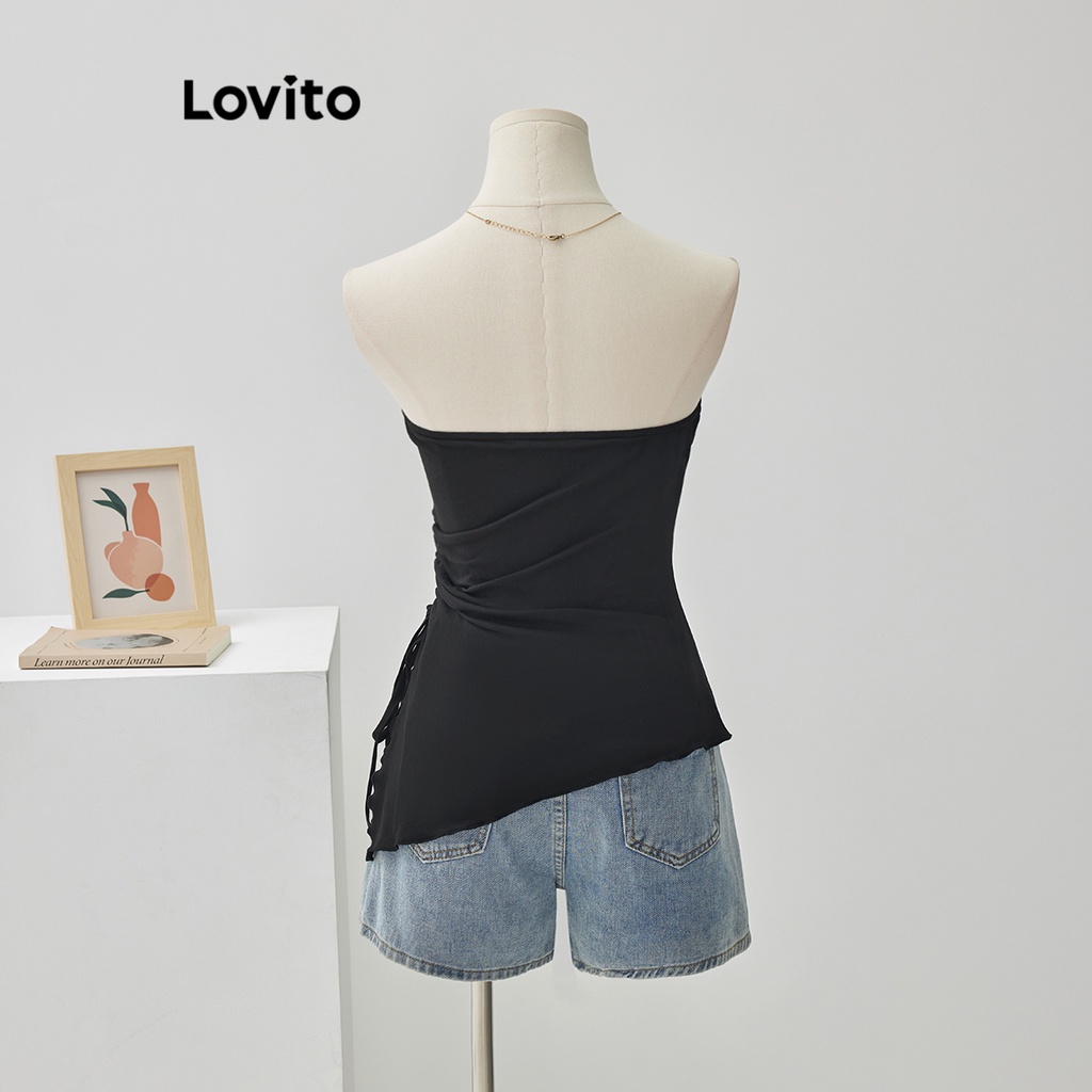 Lovito Áo cánh nữ không đối xứng có cúc trước trơn thanh lịch lne24084 (Nhiều màu)